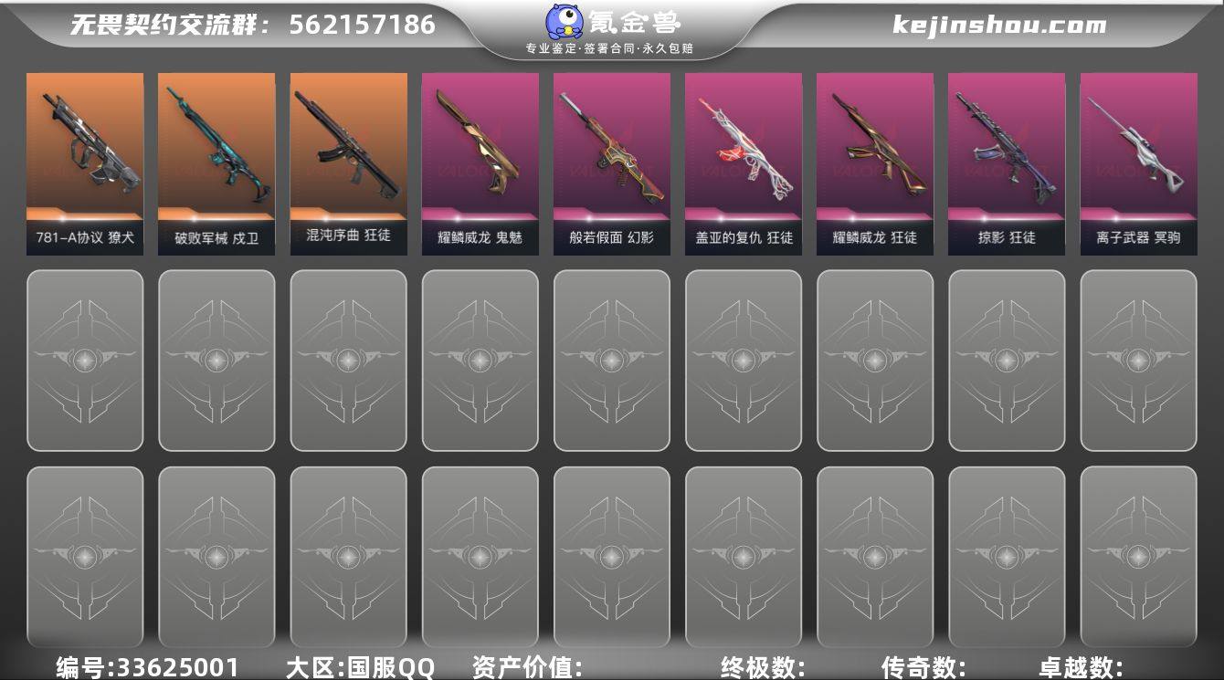 【套装】:荆刺圣骸套装,VCT 2026 赛季套装,VCTxEDG 队伍套装 【英雄】:幻棱,炼狱,维斯,暮蝶,钛狐,壹决,铁臂,捷风,雷兹,幽影,不死鸟,贤者,猎枭,蝰蛇,零,芮娜,奇乐,尚勃勒,霓虹,斯凯,夜露,星礈,K/O,海神,盖可,黑梦,钢锁 【近战武器】:近战武器-荆刺链刃,近战武器-VCT 2026 篆刀,近战武器-侦察力量 蝴蝶刀,近战武器-紫金爪刀,近战武器-鬼丸国纲,近战武器-未来开拓者,近战武器-超能偶像 应援棒,近战武器-超限闪存 匕首,近战武器-荒土机兵 热能刀,近战武器-诡秘蛇影 军刀,近战武器-神圣领域 战刀 【狂徒】:狂徒-混沌序曲,狂徒-塑水宗,狂徒-创·纪元,狂徒-RGX 11z Pro,狂徒-荆刺圣骸,狂徒-掠影,狂徒-盖亚的复仇,狂徒-耀鳞威龙,狂徒-赤焰铁骥,狂徒-超能偶像,狂徒-荒土机兵,狂徒-诡秘蛇影 【幻影】:幻影-般若假面,幻影-超限闪存,幻影-神圣领域,幻影-聚合之力,幻影-纳米打击,幻影-末日之翼 【戍卫】:戍卫-破败军械,戍卫-荆刺圣骸,戍卫-超能偶像,戍卫-浮光跃金,戍卫-逆冲蛮牛,戍卫-战术熊与伙伴们,戍卫-月球哨兵,戍卫-折光棱晶 【獠犬】:獠犬-781-A协议,獠犬-神圣领域,獠犬-采蜜小蜂队,獠犬-模拟赫兹,獠犬-逆冲...