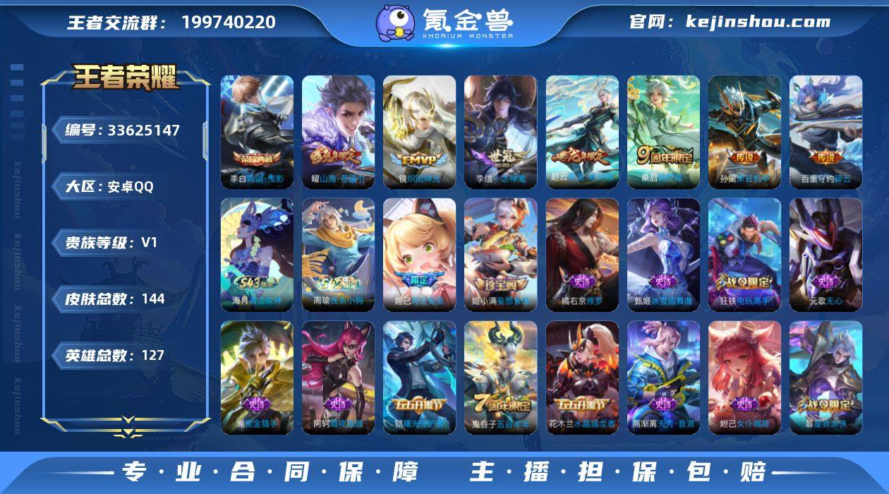 安卓Q-V0-永恒钻石IV段位-127英雄-144皮肤-1典藏皮肤-7传说-41史诗 【荣耀典藏】:李白鸣剑曳影 【传说皮肤】:桑启鸣野蒿,赵云乘龙铭钟鼎,曜山海苍雷引,百里守约碎云,孙策末日机甲,镜炽阳神光,李信一念神魔 【限定皮肤】:姜子牙天穹之誓,狄仁杰阴阳师,赵云皇家上将,妲己时之奇旅,钟无艳超时空战士,元歌无心,甄姬落雪兰心,狄仁杰魔术师,达摩沙漠行僧,项羽海滩派对,王昭君午后时光,李元芳云中旅人,鬼谷子五谷丰年,沈梦溪大漠名商,裴擒虎擒涛扼浪,狂铁电玩高手,云中君纤云弄巧,上官婉儿神器万象笔,嫦娥暖冬兔眠,曜山海苍雷引,鲁班大师探海日志,桑启海盐诗旅,暃星界游侠,张良古海寻踪,蒙犽百解令,鬼谷子天穹祈灯,姬小满妄想食味,赵云乘龙铭钟鼎,刘邦剑破天穹,刘备异域游侠,周瑜熔金海岸 【年限皮肤】:曜山海苍雷引,赵云乘龙铭钟鼎 【赛季限定】:达摩沙漠行僧,沈梦溪大漠名商,李元芳云中旅人,桑启海盐诗旅,裴擒虎擒涛扼浪,鲁班大师探海日志,张良古海寻踪,鬼谷子天穹祈灯,刘邦剑破天穹,姜子牙天穹之誓,太乙真人谧流熔炉,钟馗虚灵犬护 【战令限定】:狂铁电玩高手,王昭君午后时光,钟无艳超时空战士,甄姬落雪兰心,暃星界游侠...