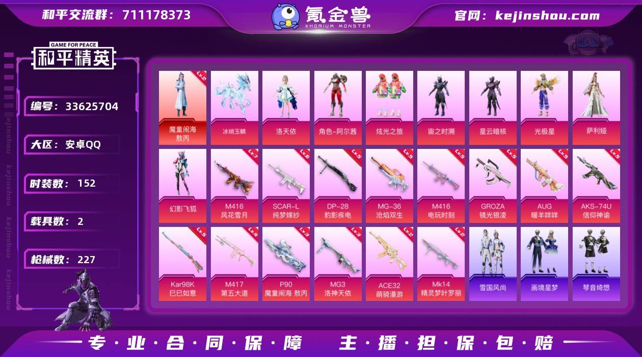 【LHPX1682】【特价出售/店主推荐】安卓 手Q-1神装-8粉装-14特效枪-2载具-5粉色飞行器-75566热力值-16王牌印记-152套装-227枪皮【红色神装等级】:魔童闹海-敖丙(二级)【热门品类】:套装-浪漫天命,角色-军刀雅典娜,套装-龟仙人,套装-粉红小猪,角色-8号机,角色-Mark.06【粉色套装】:角色-洛天依,角色-阿尔茜,粉装-炫光之旅,角色-宙之时溯,角色-星云暗核,角色-光极星,角色-萨利娅,粉装-幻影飞狐【粉色枪皮等级】:SCAR-L-纯梦嫁纱(六级),M416-风花雪月(七级),M416-电玩时刻(五级),GROZA-镜光银凌(五级),AUG-暖羊咩咩(五级),ACE32-萌骑漫游(二级),AKS-74U-信仰神谕(五级),P90-魔童闹海 敖丙(三级),Kar98K-巳巳如意(五级),Mk14-精灵梦叶罗丽(二级),M417-第五大道(四级),DP-28-豹影疾电(五级),MG3-洛神天依(三级),MG-36-沧焰双生(五级)【粉色载具】:僚机-冰龙团团,冰绡玉鳞【粉色枪皮】:SCAR-L-纯梦嫁纱,M416-风花雪月,M416-电玩时刻,GROZA-镜光银凌,AUG-暖羊咩咩,ACE32-萌骑漫游,AKS-74U-信仰神谕,P90-魔童闹海 敖丙,Kar98K-巳巳如意,Mk14-精灵梦叶罗丽,M417-第五大道,DP-28-豹影疾电,MG3-洛神天依,MG-36-沧焰双生【粉色飞行器】:炫...