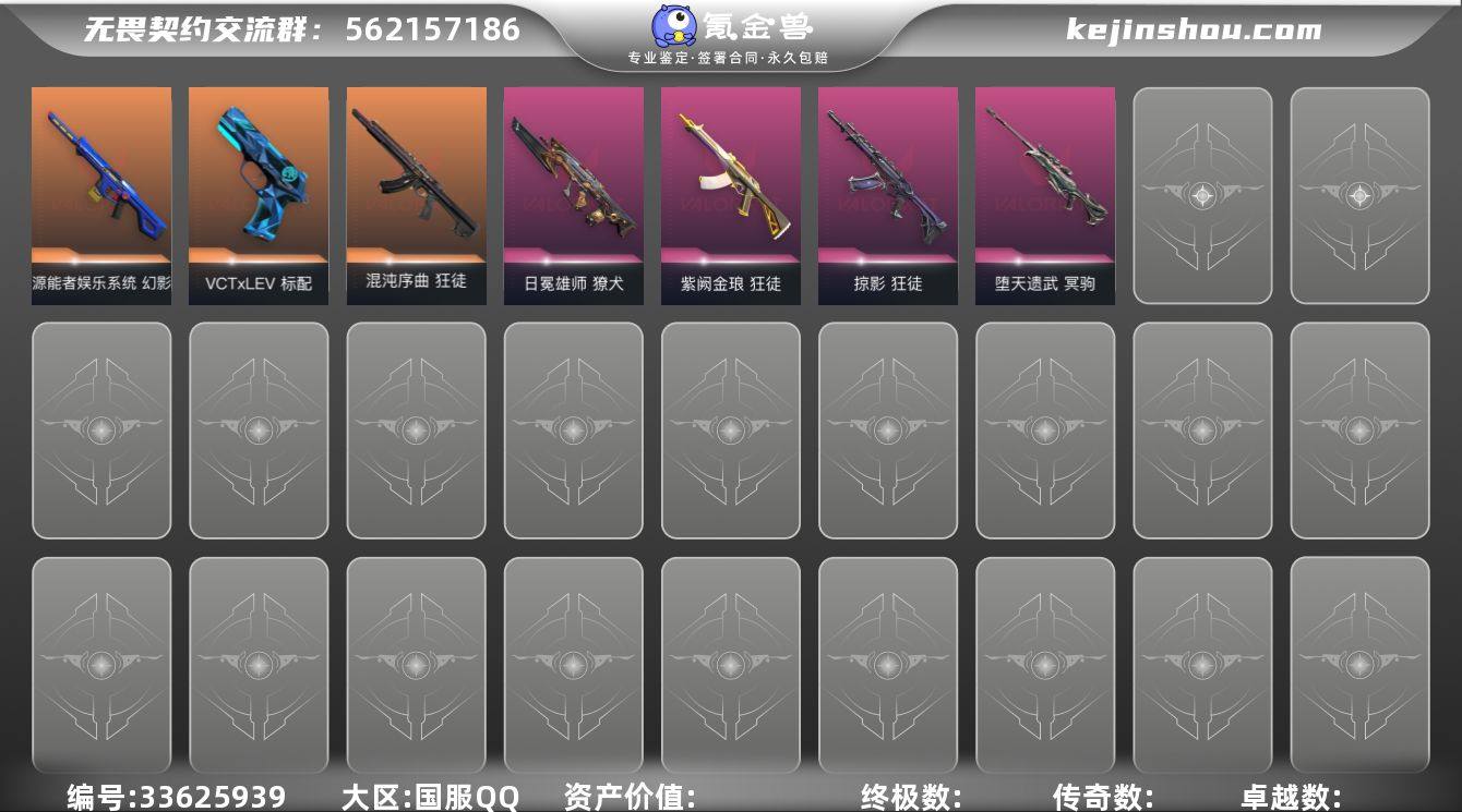 【充值2k多性价比十分高,可以小刀下,已经签合同找回永久赔】 【套装】:VCT 2026 赛季套装 【英雄】:幻棱,炼狱,维斯,暮蝶,钛狐,壹决,铁臂,捷风,雷兹,幽影,不死鸟,贤者,猎枭,蝰蛇,零,芮娜,奇乐,尚勃勒,霓虹,斯凯,夜露,星礈,K/O,海神,盖可,黑梦,钢锁 【近战武器】:近战武器-VCT 2026 篆刀,近战武器-澄湖潋滟,近战武器-夜之蝴蝶,近战武器-超限闪存 匕首,近战武器-神圣领域 战刀 【狂徒】:狂徒-2025全球冠军赛,狂徒-混沌序曲,狂徒-掠影,狂徒-紫阙金琅 【幻影】:幻影-源能者娱乐系统,幻影-超限闪存,幻影-神圣领域 【戍卫】:戍卫-浮光跃金,戍卫-月球哨兵 【獠犬】:獠犬-日冕雄师,獠犬-神圣领域,獠犬-模拟赫兹 【冥驹】:冥驹-堕天遗武,冥驹-模拟赫兹,冥驹-星云暗涌 【莽侠】:莽侠-超限闪存,莽侠-月球哨兵 【战神】:战神-神圣领域,战神-浮光跃金 【雄鹿】:雄鹿-模拟赫兹,雄鹿-月球哨兵 【骇灵】:骇灵-浮光跃金,骇灵-星云暗涌 【蜂刺】:蜂刺-超限闪存,蜂刺-星云暗涌 【标配】:标配-超能偶像,标配-浮光跃金 【VCT手枪】:标配-VCT x LEV 【正义】:正义-西部未来,正义-超限闪存,正义-纳米打击,正义-月球哨兵 【鬼魅】...
