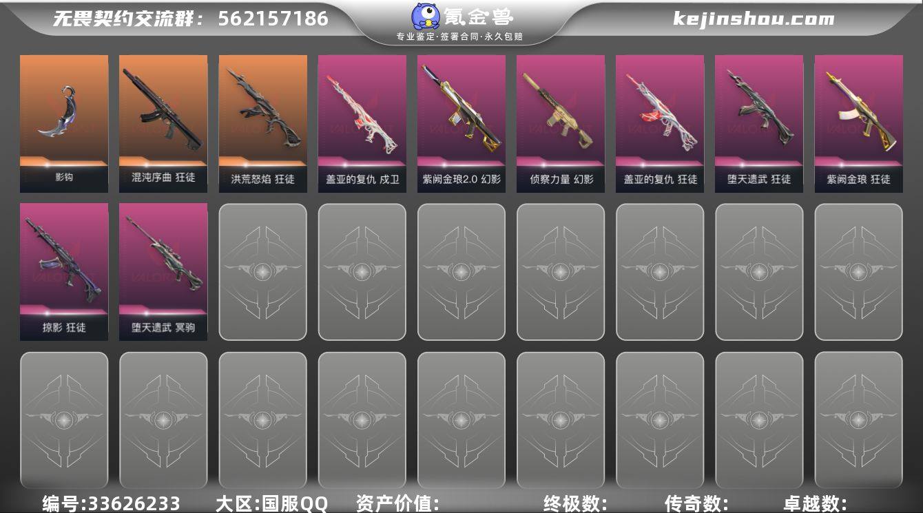 【套装】:掠影//2.0套装 【英雄】:幻棱,炼狱,维斯,暮蝶,钛狐,壹决,铁臂,捷风,雷兹,幽影,不死鸟,贤者,猎枭,蝰蛇,零,芮娜,奇乐,尚勃勒,霓虹,斯凯,夜露,星礈,K/O,海神,盖可,黑梦,钢锁 【近战武器】:近战武器-影钩,近战武器-剥皮小刀,近战武器-未来开拓者,近战武器-超限闪存 匕首,近战武器-诡秘蛇影 军刀 【狂徒】:狂徒-洪荒怒焰,狂徒-混沌序曲,狂徒-RGX 11z Pro,狂徒-堕天遗武,狂徒-掠影,狂徒-盖亚的复仇,狂徒-紫阙金琅,狂徒-诡秘蛇影 【幻影】:幻影-侦察力量,幻影-紫阙金琅//2.0,幻影-异鳞魔蛇,幻影-掠影//2.0,幻影-超限闪存,幻影-末日之翼 【戍卫】:戍卫-盖亚的复仇,戍卫-浮光跃金,戍卫-折光棱晶 【獠犬】:獠犬-模拟赫兹 【冥驹】:冥驹-堕天遗武,冥驹-模拟赫兹 【飞将】:飞将-末日之翼 【莽侠】:莽侠-超限闪存,莽侠-诡秘蛇影 【战神】:战神-浮光跃金 【奥丁】:奥丁-掠影//2.0,奥丁-末日之翼 【判官】:判官-诡秘蛇影 【雄鹿】:雄鹿-模拟赫兹 【骇灵】:骇灵-掠影//2.0,骇灵-浮光跃金 【蜂刺】:蜂刺-超限闪存,蜂刺-折光棱晶 【标配】:标配-浮光跃金,标配-折光棱晶 【VCT手枪】:标配-VCT25 x PRX 【正义】:...
