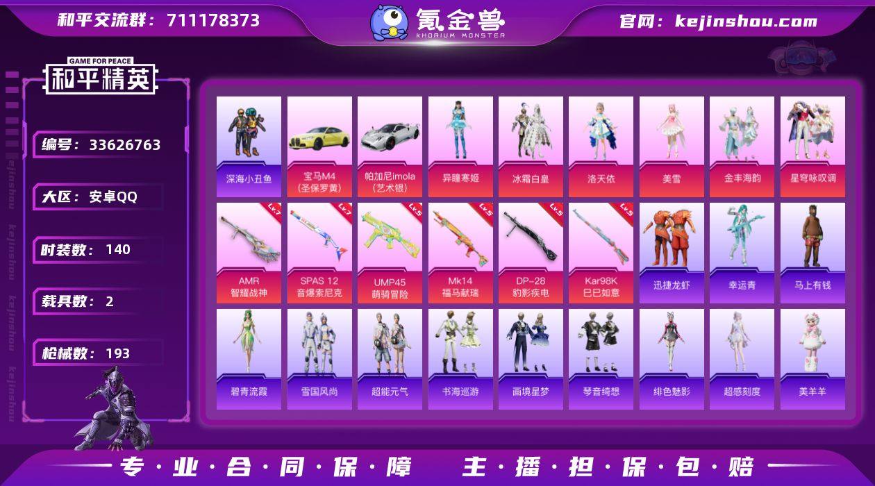YZJ16984-可二次-安卓Q-2载具6粉装6特效枪5热门【精品公主号 优质主页面板 宝马M4 帕加尼 洛天依 美雪 权威小番茄 情公主 俏兔智灵 超感刻度 莱茵河畔 月蓝流光 双马尾 红眼罩 全满级特效枪 千金淑猫背包头盔 6款飞行器】140套装193枪皮 64465热力值 14印记 5卓越4传奇1绝世印记 历史绝世王牌20星 【2载具】 帕加尼imola(艺术银) 宝马M4(圣保罗黄) 【6粉装】 美雪 洛天依 金丰海韵 异瞳寒姬 星穹咏叹调 冰霜白皇 【6特效枪】 Kar98K-巳巳如意 (5级) DP-28-豹影疾电 (5级) AMR-智耀战神 (7级) Mk14-福马献瑞 (5级) UMP45-萌骑冒险 (5级) SPAS-12-音爆索尼克 (7级) 【5热门】 龟仙人 红熊茄茄 深海小丑鱼 暗影哥特 破蛋小黄鸡 【2头盔】 深海小丑鱼头盔 花间之火头盔 营地ID:935653223
