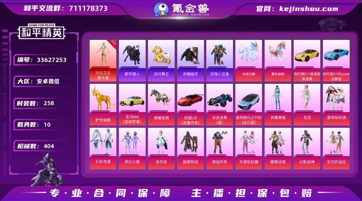 可二次【5级图卡盟 小丑赤蝎金鞋都市男神巡查衣LED眼罩 30粉装29特效枪10载具】 安卓V区-158140热力值-258套装-404枪皮 【1红装】 沙丘之主-图卡盟(5级)【10载具】 护世瑞兽 路特斯ELETRE(冰川蓝) 合金龙骨(蓝) 暮色幽蹄 仰望U9(赤霞丹朱) 黑曜夜骑 宝马M4(圣保罗黄) 保时捷918 Spyder(沉静蓝) 冰绡玉鳞 保时捷911 敞篷版(极速黄)【7稀有】 赤蝎幽灵 都市猎人 派对舞王(金靴子) 巡查衣 放客神游眼镜LED眼罩 冷酷挑战者 Mark.06蓝螳螂【30粉装】 怪诞乔克(小丑) 放客神游 极限特训 梦幻火箭 宝贝奶油派 天使彩虹糖 洛天依 圣堂之誓 傲雪凌霜 星之彼岸 彩虹甜喵 复仇流浪者 蝶舞迷情 垂柳戏鸭 莲影清波 白兰星 第五大道 千面幻镜(假木乃伊) 盖世英雄 未来歌姬 幻影战神 智能音符 创世·救赎 角色-光极星 角色-异瞳寒姬 角色-烟云彩露 星穹咏叹调 幻彩电音 角色-花灵【29特效枪】 Kar98K-圣域龙灵(3级) M24-镜域双华(1级) UMP45-宇宙意志(3级) M416-五爪金龙(6级) AKM-甜心宝贝(6级) 燃烧瓶-薄荷可可(4级) P90-诸神·破晓(5级) M249-绝对恒星(1级) M24-莲影清波(5级) SCAR-L-青春物语(1级) DP-28-圣堂之誓(6级) SCAR-L-梦幻火箭(7级) AKM-星际浪客(1级) M417-第五大道(1级)...