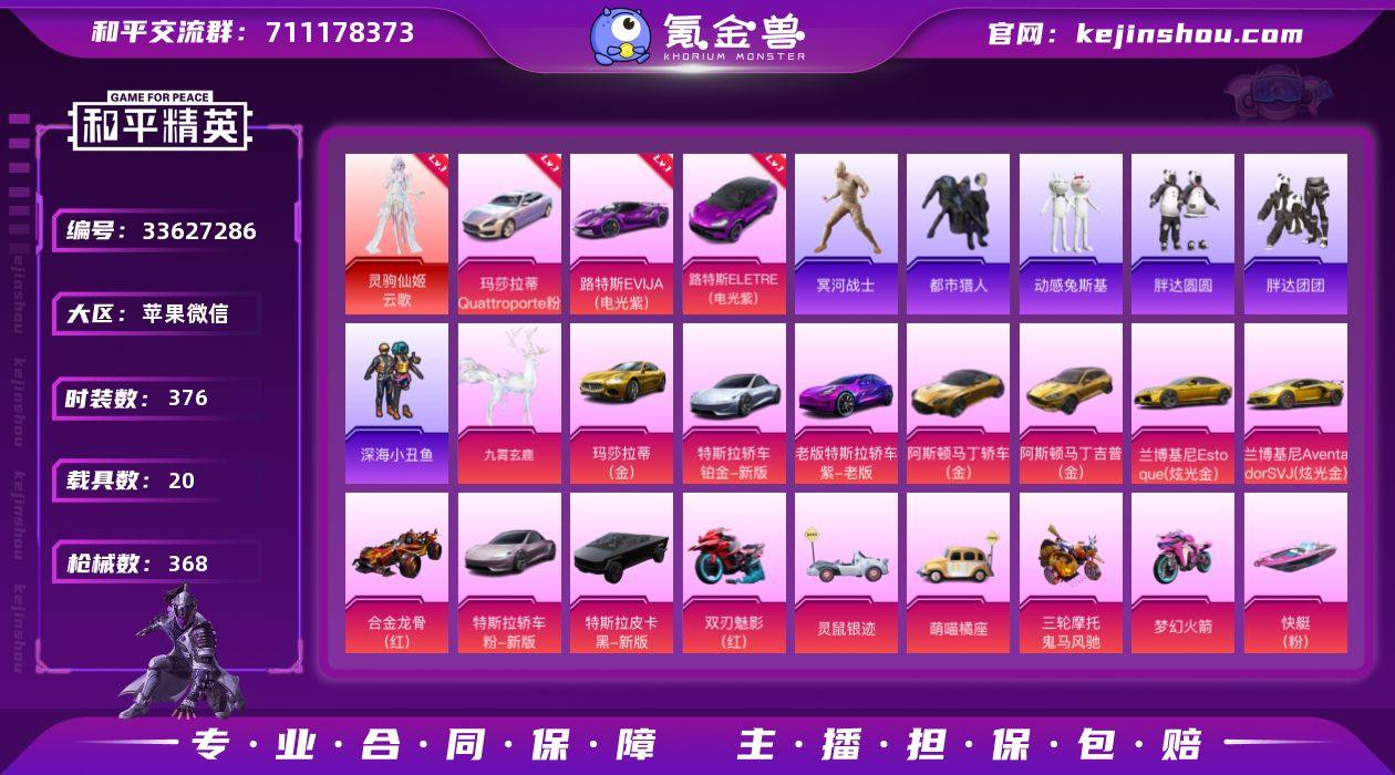 【78粉装28特效枪22载具 1红装战神框白木乃伊小丑三色螳螂都市猎人 5级玛莎星2个4级升级车 小熊背包猫包极品身法素材号】 苹果V区-252294热力值-历史最高段位:无敌战神-376套装-368枪皮 【1红装】 灵驹仙姬-云歌(1级)【22载具】 路特斯EL紫色(4级) 路特斯EV紫色(4级) 玛莎拉蒂Q幻星粉(5级) 玛莎拉蒂金色 兰博轿车金色 阿斯顿马丁S金色 阿斯顿马丁X金色 特斯拉R尊享铂 空客恋语之翼僚机 合金龙骨红色 特斯拉3紫色 特斯拉R沁心粉 灵鼠银迹 萌喵橘座 双人摩托梦幻火箭 双刃魅影红色 特斯拉C极昼黑 塞莎霓虹粉(1级) 兰博SVJ炫光金 萌兔起飞僚机 鬼马风驰 九霄玄鹿【7稀有】 木乃伊 都市猎人 萌熊伴侣背包(小熊背包) 百万伏待背包(猫包) 奇异狩猎者 AKM-百万伏特 SCAR-L-粉色回忆【78粉装】 初号机款机体服(紫螳螂) 零号机款机体服(黄螳螂) 怪诞乔克(小丑) 2号机款机体服(红螳螂) 角色-2号机款机体服 梦幻火箭 雪国幻梦(冰雪女王) 宝贝奶油派 天使彩虹糖 甜心巧克力 缤纷油彩(猪脸妹) 洛天依 绚金战神 蜜桃特工 甜蜜誓约 极致幻想 花间之火 草莓生巧 香水柠檬 童趣迷兔 冰霜白皇 绮梦青鸾 星之彼岸 赛罗闪耀型 闪耀迪迦型 枪炮玫瑰 恐龙拽拽 甜心娃娃 焦糖拿铁 暗...