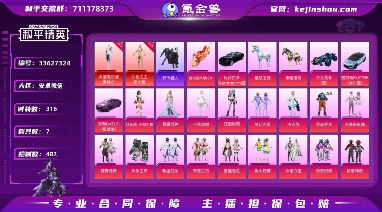 【2红装4级图卡盟男女小丑都市男神35粉装23特效枪8载具身法素材号】 安卓V区-178441热力值-22印记-316套装-482枪皮 【2红装】 沙丘之主-图卡盟(4级) 灵猫魔法师-塞维尔(2级)【8载具】 路特斯EL蓝色 玛莎拉蒂Q蓝色 合金龙骨蓝色 宾利BATTUR(极速紫) 萌兔起飞僚机 星梦玉骢 黑曜夜骑 踏焰逐风摩托车【3稀有】 都市猎人 奇异狩猎者 Mark.06蓝螳螂【35粉装】 怪诞乔克(小丑) 狂魅哈莉(小丑女) 梦幻火箭 天使彩虹糖 洛天依 沙场疾风 蜜语绒猫 蜜桃特工 快乐主宰 极致幻想 草莓生巧 香水柠檬 童趣迷兔 冰霜白皇 旋转彩虹 暗夜玫瑰 蝶舞迷情 放客神游 筑梦精灵 闪耀律动 彩虹鹿灵 新星烈龙 小叽联名款 闲梦青缨 海盐物语 第五大道 白勺歌姬 小可学妹 未来歌姬 极限特训 角色-智耀战神 角色-狂花道·不知火舞 角色-小蓝 角色-美雪 角色-千金淑猫【23特效枪】 Kar98K-圣域龙灵(3级) M416-灵猫魔法师(3级) M416-心之恋语(5级) AKM-梦之光华(5级) GROZA-焦糖拿铁(5级) SCAR-L-青春物语(7级) DP-28-枪炮玫瑰(2级) AUG-南国舞曲(6级) M762-甜蜜誓约(4级) MG3-梦幻舞会(4级) SCAR-L-童趣迷兔(2级) UMP45-相思残雪(4级) UZI-筑梦精灵(5级) M16A4-垂柳戏鸭(4级) Vector-飒粉甜心(5级) 平底...