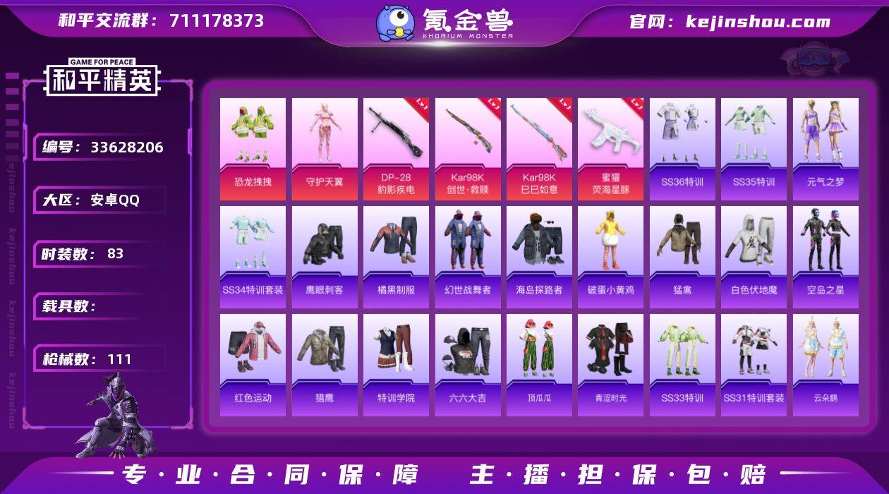 可二次实名【浪漫天命4特效枪2粉装 秒换绑不用等】 安卓Q区-31602热力值-83套装-111枪皮 【2粉装】 恐龙拽拽 角色-守护天翼【4特效枪】 蜜獾-荧海星豚(4级) Kar98K-创世·救赎(5级) Kar98K-巳巳如意(5级) DP-28-豹影疾电(5级)【125热门】 浪漫天命 白色伏地魔 SS27特训 SS26特训 SS25特训 AKM-缤纷海域 M762-彩虹符号 M249-彩虹符号 MG3-幻世战舞者 鹰眼刺客 破蛋小黄鸡 长空猛禽 特训学院 青涩时光 青年教官 霓虹街区 魅力单车 六六大吉 猎鹰 黎明保卫者 蓝色运动 橘黑制服 黄色运动 S686-奇异狩猎者 红色运动 海岛探路者 风暴特警 纯真浪花 汤姆逊-智耀战神 S1897-糯团青竹 海琴烟 顶瓜瓜 恋语绒绒 SS34特训 星影赞美诗 AWM-天降萌叽 大橘大利 彩虹兔 蓝冰羽 龙魂突击队 SS29特训 鱼渊荷华 SS28特训 PKM-啾咪啾咪 石蕴玉辉 汤姆逊-幻星舰长 海盐绵绵冰 M16A4-冰河战士 燕燕于飞 SS31特训 R1895-镭金极速 SS33特训 SS32特训 巳巳如意 紫幽梦 雪绒豹 MG3-霓彩脉冲 沙漠之鹰-花傲天 曼妙人鱼 SS36特训 平底锅-圣斗士星矢 热情海星 异域银装 粉恋花 战术大师 云朵鹅 短管霰弹-星穹咏叹调 UMP45-繁龙极客 S1897-精灵梦叶罗丽 Vector-创世·救赎 M416-糯团青竹 破片手榴弹-海盐豹豹...