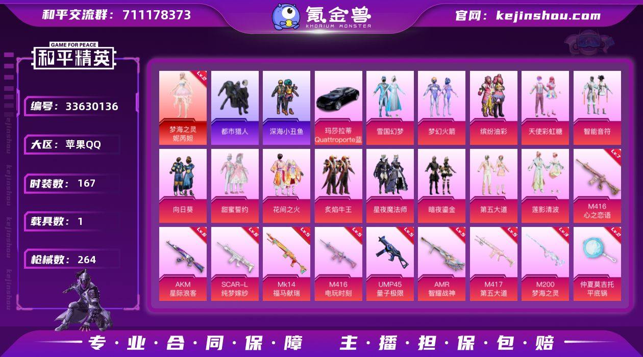 167套装/枪械10/装备342/载具1/战备180/王牌印记17/热力值86832/六级AKM-星际浪客/六级SCAR-L-纯梦嫁纱/七级M416-心之恋语/五级M416-电玩时刻/五级UMP45-量子极限/五级MK14-福马献瑞/五级AMR-智耀战神/五级M417-第五大道/三级M200-梦海之灵/二级平底锅-仲夏莫吉托/二级梦海之灵-妮芮妲/梦海之灵-妮芮妲/雪国幻梦/梦幻火箭(新101)/缤纷油彩/浪漫天命/都市猎人/深海小丑鱼/小丑鱼/龟仙人/Mark.06/天使彩虹糖/智能音符/向日葵/甜蜜誓约/花间之火/炙焰牛王/星夜魔法师/暗夜鎏金/第五大道/莲影清波/玛莎拉蒂Quattroporte(夜幕蓝)/AKM星际浪客/SCAR-L纯梦嫁纱/M416心之恋语/M416电玩时刻/UMP45量子极限/MK14-福马献瑞/AMR-智耀战神/M417第五大道/M200梦海之灵/平底锅仲夏莫吉托/梦幻火箭飞行器/星空武士飞行器/幻海精灵飞行器/梦幻火箭降落伞/古堡领主降落伞/四圣焕新降落伞/心之恋语降落伞/花间之火降落伞/洛神天依降落伞/暗星紫秘降落伞/青春物语降落伞/炙焰牛王降落伞/环太平洋降落伞/垂柳戏鸭降落伞/旋转彩虹降落伞/歌者泠鸢降落伞/暗夜鎏金降落伞/海螺星光降落伞/第五大道降落伞/纯梦嫁纱降落伞/未来歌姬降落伞/闲梦青缨降落伞/精灵梦叶罗丽降落伞/忍者神龟降落伞/樱桃泡泡降落...