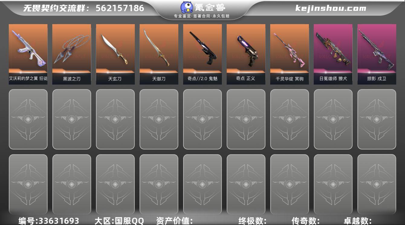 【套装】:2022全球冠军赛套装,掠影//2.0套装 【英雄】:幻棱,炼狱,维斯,暮蝶,钛狐,壹决,铁臂,捷风,幽影,不死鸟,贤者,猎枭,蝰蛇,零,芮娜,奇乐,尚勃勒,霓虹,斯凯,夜露,星礈,K/O,海神,盖可,黑梦 【近战武器】:近战武器-2022全球冠军赛 蝴蝶刀,近战武器-蒙太奇 战斧,近战武器-碎心裂刃,近战武器-流风回雪,近战武器-影钩,近战武器-黑波之刃,近战武器-天玄刀,近战武器-天御刀,近战武器-日耀风暴 遗器,近战武器-阿特拉斯指挥部 甩棍 【狂徒】:狂徒-RGX 11z Pro,狂徒-艾沃莉的梦之翼 【幻影】:幻影-2022全球冠军赛,幻影-掠影//2.0,幻影-蒙太奇 【戍卫】:戍卫-掠影 【獠犬】:獠犬-日冕雄师 【冥驹】:冥驹-千灵华绽 【战神】:战神-蒙太奇 【奥丁】:奥丁-掠影//2.0 【骇灵】:骇灵-掠影//2.0,骇灵-无限竞技,骇灵-蒙太奇 【正义】:正义-奇点 【鬼魅】:鬼魅-奇点//2.0,鬼魅-掠影//2.0 【狂怒】:狂怒-蒙太奇 【卡面】:Clutch 卡面,无畏契约GO!第一卷:芮娜 卡面,无畏契约GO!第一卷:零 卡面,《双城之战》金克丝 卡面,无畏契约GO!第一卷:贤者 卡面,钢锁vs盖可 卡面,代号红色 卡面,新兵报到 卡面,V契约 卡面,无畏契约 卡面...