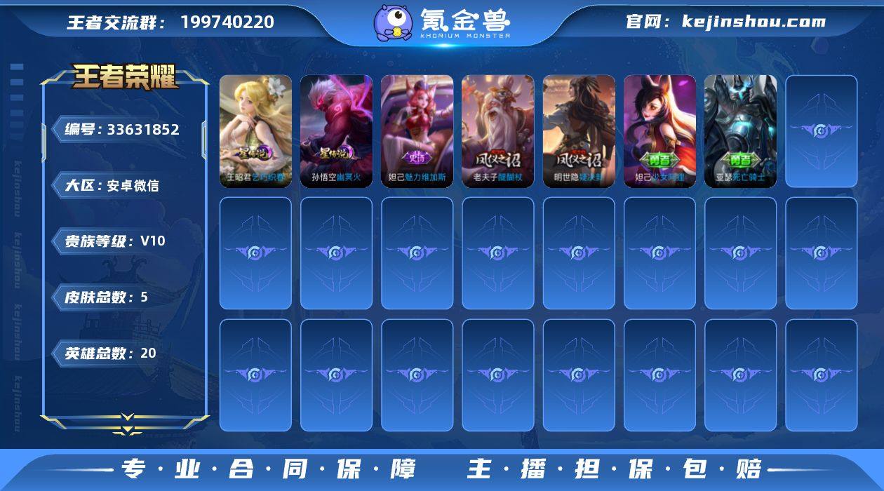 安卓WX-临时登录介意勿拍!V10-130英雄-445皮肤-9典藏皮肤-1典藏英雄-1无双-45传说-143史诗-2星元