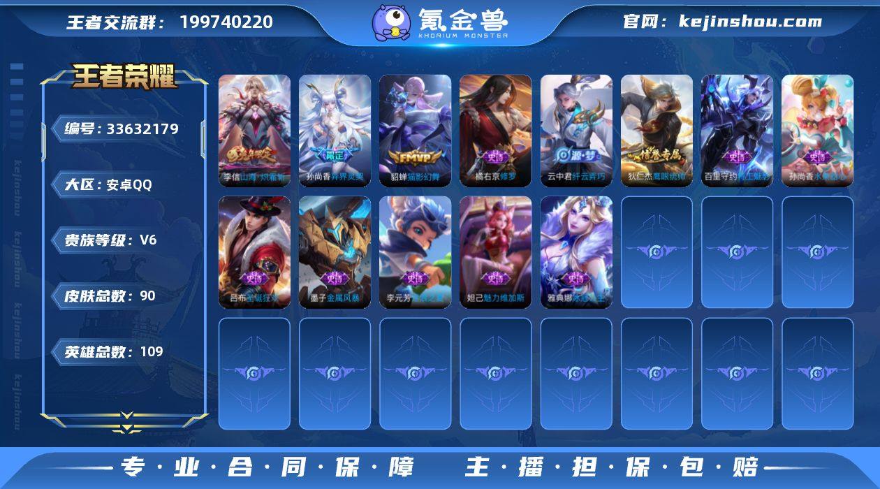 V6 5传说 109英雄 90皮肤 可二次 可修改实名 男号