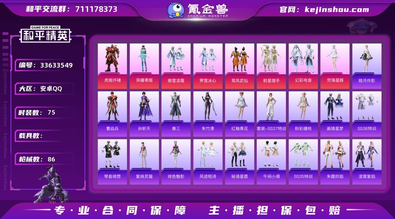 【和平精英】9粉装,15特效枪,1载具,历史最高段位:超级王牌11星 王牌印记12次 热力值:60083,133套装,183枪械,235装备,94战备;套装:套装-射星猎手,套装-傲雪凌霜,套装-霁雪冰心,套装-鸾凤武仙,玩偶服-猪猪侠,角色-异瞳寒姬,套装-幻彩电音,角色-荧海星豚,角色-虎痴许褚,套装-特训学院,套装-红色运动,套装-蓝色运动,套装-白色伏地魔,套装-竞技名士,套装-深蓝色名流,套装-湖蓝色名流,套装-猛禽,套装-长空猛禽,套装-黎明保卫者,套装-海岛探路者,套装-浪漫天命,套装-完美偶像,套装-魅力单车,套装-绮丽涂鸦,套装-都市漫游者,套装-野性战心,套装-荣耀,套装-潮流炫酷,套装-沙漠兵团,套装-雪山精英,套装-幻世战舞者,套装-蓝调潮人,套装-缤纷果语,套装-龙魂突击队,套装-冰川特警,套装-灿烂千阳,套装-元素星魂,套装-粉红小猪,套装-鹤鸣,套装-夏日音浪,套装-顽皮玉兔,套装-探宝勇士,套装-牛气满满,套装-纯白舞曲,套装-战术大师,套装-狙击之神,套装-SS18特训,套装-吉莉礼服,套装-迅捷龙虾,套装-SS19特训,套装-甜心信使,套装-极速竞梦,套装-飞驰魅影,套装-音速流光,套装-SS20特训,套装-SS21特训,套装-萌趣咩咩,套装-娇憨猪...