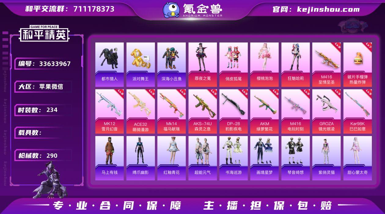 【AZH3044】苹果 微信【都市金靴子 樱桃泡泡狂魅哈莉 深海小丑鱼暗影哥特 满级至情至圣M416 满级手雷-热量炸弹】4粉装-11特效枪-0载具-3粉色飞行器-84904热力值-20王牌印记-234套装-290枪皮 【热门品类】:套装-浪漫天命,套装-都市猎人,套装-派对舞王,套装-深海小丑鱼,套装-龟仙人,套装-潮萌小黄鸭,套装-暗影哥特,套装-粉红小猪,角色-Mark.06 【粉色套装】:粉装-俏皮狐尾,角色-樱桃泡泡,角色-狂魅哈莉,角色-罪夜之冕 【粉色枪皮等级】:AKM-绿萝繁花(五级),M416-至情至圣(九级),M416-电玩时刻(五级),GROZA-镜光银凌(五级),ACE32-萌骑漫游(五级),AKS-74U-森灵之息(五级),Kar98K-巳巳如意(五级),Mk14-福马献瑞(五级),MK12-雪月幻音(六级),DP-28-豹影疾电(五级),破片手榴弹-热量炸弹(七级) 【粉色枪皮】:AKM-绿萝繁花,M416-至情至圣,M416-电玩时刻,GROZA-镜光银凌,ACE32-萌骑漫游,AKS-74U-森灵之息,Kar98K-巳巳如意,Mk14-福马献瑞,MK12-雪月幻音,DP-28-豹影疾电,破片手榴弹-热量炸弹 【粉色飞行器】:炫彩糖果飞行器,霓虹漫游飞行器 【粉色降落伞】:幻影战神降落伞,神秘黑猫降落伞,星之彼岸降落伞,环太平洋降落伞,晶梦幻蝶降落伞,双重狂...