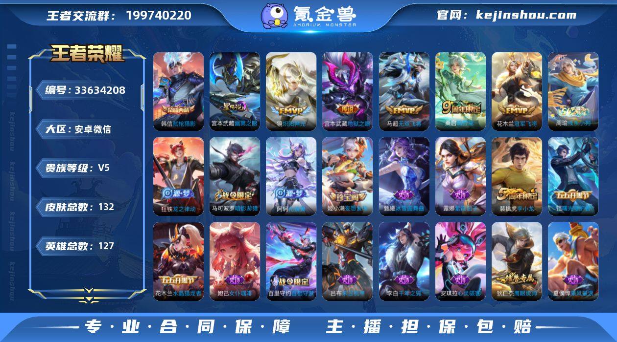 可换绑【精品小号·韩信典藏·多传说限定号】1按键,1星传说,7王者印记,五级铭文120,可二次KK30015,安卓WX-V5-132皮肤-1典藏皮肤-5传说-35史诗【英雄全皮】:敖隐全皮【荣耀典藏】:韩信弑枪猎影【星元皮肤】:宫本武藏幽冥之眼【传说皮肤】:桑启鸣野蒿,马超无双飞将,镜炽阳神光,花木兰冠军飞将,宫本武藏地狱之眼【限定皮肤】:姜子牙天穹之誓,杨戬破阵退雄兵,狄仁杰阴阳师,赵云皇家上将,嬴政白昼王子,孙尚香蔷薇恋人,马可波罗暗影游猎,项羽海滩派对,兰陵王金庭之子,李元芳云中旅人,百里玄策原初追逐者,沈梦溪大漠名商,裴擒虎李小龙,裴擒虎擒涛扼浪,鲁班大师探海日志,桑启海盐诗旅,阿古朵江河有灵,张良古海寻踪,高渐离燃音魔法,妲己灵卜魔法,鬼谷子天穹祈灯,姬小满妄想食味,沈梦溪龙舞盛年,鲁班七号蔬乡物语,李元芳蔬乡物语,刘邦剑破天穹,程咬金群星魔术团,周瑜熔金海岸【赛季限定】:兰陵王金庭之子,沈梦溪大漠名商,李元芳云中旅人,桑启海盐诗旅,裴擒虎擒涛扼浪,鲁班大师探海日志,张良古海寻踪,鬼谷子天穹祈灯,刘邦剑破天穹,姜子牙天穹之誓,东皇太一噬灭天穹,太乙真人谧流熔炉,钟馗虚灵犬护,甄姬逆浪荇歌,亚瑟荣光之誓,百...