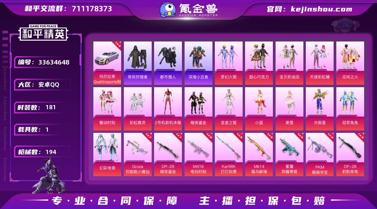 【AZH3309】安卓 手Q【都市梦幻火箭红螳螂巧克力三姐妹 满级巴啦啦小魔仙GROZA 满级暗夜鎏金DP-28 1载具】15粉装-8特效枪-1载具-4粉色飞行器-72017热力值-13王牌印记-181套装-194枪皮 【红色载具】:玛莎拉蒂Quattroporte(幻星粉)(三级) 【热门品类】:粉装-梦幻火箭,套装-浪漫天命,套装-都市猎人,套装-深海小丑鱼,套装-小丑鱼,套装-奇异狩猎者,套装-龟仙人 【粉色套装】:粉装-甜心巧克力,粉装-宝贝奶油派,粉装-天使彩虹糖,粉装-梦幻火箭,粉装-花间之火,粉装-馨动时刻,粉装-彩虹鹿灵,角色-2号机款机体服,粉装-暗夜鎏金,角色-圣堂之誓,角色-小蓝,角色-美雪,角色-光极星,粉装-冠军兔兔,粉装-幻彩电音 【粉色枪皮等级】:M416-电玩时刻(五级),GROZA-巴啦啦小魔仙(七级),蜜獾-异瞳寒姬(四级),Kar98K-巳巳如意(五级),Mk14-福马献瑞(四级),DP-28-暗夜鎏金(七级),DP-28-豹影疾电(三级),PKM-萌骑夺宝(三级) 【粉色载具】:玛莎拉蒂Quattroporte(幻星粉) 【粉色枪皮】:M416-电玩时刻,GROZA-巴啦啦小魔仙,蜜獾-异瞳寒姬,Kar98K-巳巳如意,Mk14-福马献瑞,DP-28-暗夜鎏金,DP-28-豹影疾电,PKM-萌骑夺宝 【粉色飞行器】:炫彩糖果飞行器,镜域双华-...