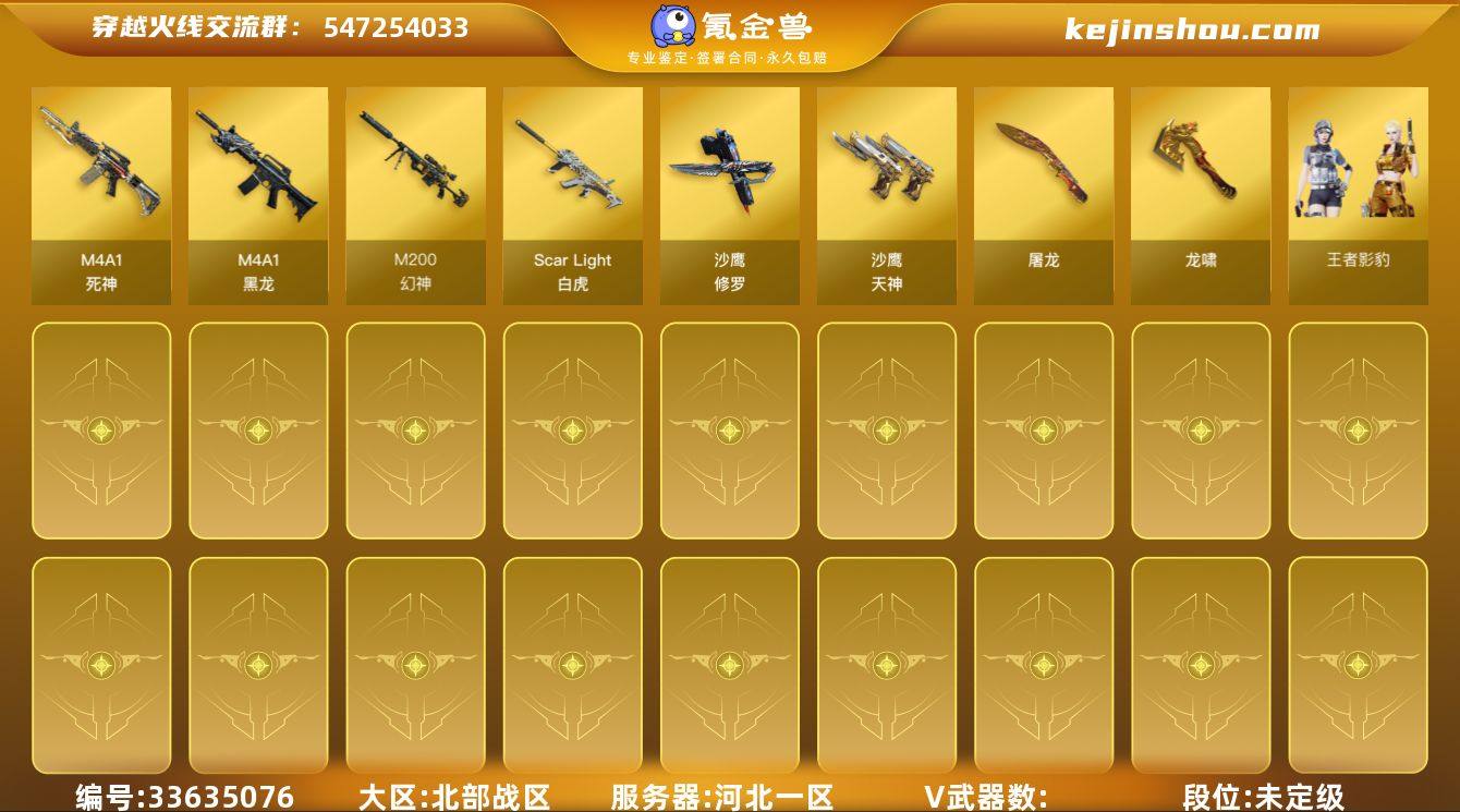 8693,北部,河北一区,可排位,19v,社交限制,幻神,幻神周瑜,白虎,*2,黑龙,死神,黑武士锦绣游龙,机械迷城穹宇,炼狱百战金芒,【四防角色】,王者影豹,【枪皮】,修罗百战金芒,修罗CFSTAR,火麒麟CFSTAR,天龙CFSTAR,【音效卡】,昌龙怀旧音效卡,炼狱百战金芒音效卡,