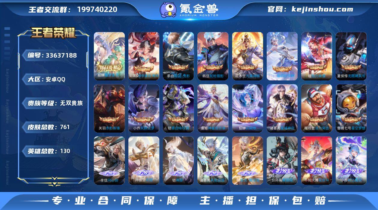 安卓Q-V11-至尊星耀I段位-130英雄-761皮肤-15典藏皮肤-1典藏英雄-1珍品无双-14无双-10珍品传说-141传说-268史诗 【英雄全皮】:廉颇全皮,小乔全皮,墨子全皮,妲己全皮,嬴政全皮,鲁班七号全皮,刘禅全皮,阿轲全皮,钟无艳全皮,扁鹊全皮,白起全皮,元歌全皮,甄姬全皮,曹操全皮,典韦全皮,宫本武藏全皮,李白全皮,马可波罗全皮,狄仁杰全皮,达摩全皮,司马懿全皮,关羽全皮,安琪拉全皮,程咬金全皮,露娜全皮,姜子牙全皮,刘邦全皮,韩信全皮,孙权全皮,王昭君全皮,兰陵王全皮,花木兰全皮,张良全皮,不知火舞全皮,朵莉亚全皮,娜可露露全皮,橘右京全皮,牛魔全皮,刘备全皮,张飞全皮,李元芳全皮,钟馗全皮,杨玉环全皮,苍全皮,杨戬全皮,哪吒全皮,干将莫邪全皮,蔡文姬全皮,太乙真人全皮,东皇太一全皮,诸葛亮全皮,大乔全皮,黄忠全皮,铠全皮,苏烈全皮,百里玄策全皮,百里守约全皮,梦奇全皮,公孙离全皮,沈梦溪全皮,狂铁全皮,米莱狄全皮,瑶全皮,云中君全皮,李信全皮,伽罗全皮,盾山全皮,孙策全皮,上官婉儿全皮,亚连全皮,嫦娥全皮,大司命全皮,马超全皮,敖隐全皮,海月全皮,曜全皮,西施全皮,蒙犽全皮,鲁班大师全皮,蒙恬全皮,...