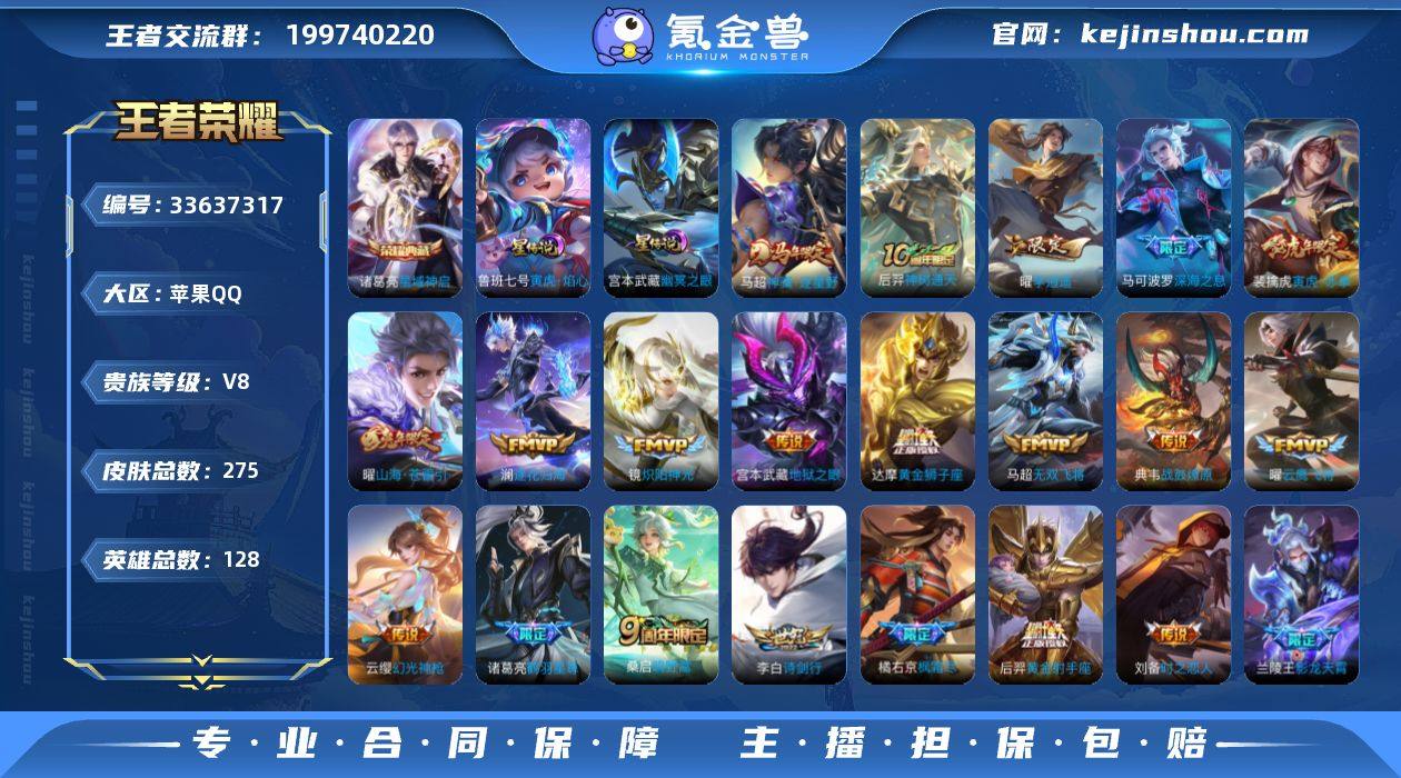 【店长推荐·万战金标司马懿·金标刘备·金标暃·金标橘右京·金标宫本·金标曜·打野54段·星域神启·神骥逐星野·战鼓燎原·影龙天霄·鹤羽星尊·山海苍雷引·枫霜尽·深海之息·寅虎赤拳·李逍遥·寅虎焰心·无二次包过】YXw25369-苹果Q-128英雄-275皮肤-14王者印记-205铭文-贵族积分5w【贵族8】【1典藏·3星传说·26传说·1天幕·22按键】【因赛季更新游戏段付以上号为准!】 【英雄全皮】:橘右京全皮,莱西奥全皮,影全皮 【荣耀典藏】:诸葛亮星域神启 【星元皮肤】:鲁班七号寅虎焰心,刘备时之思念,宫本武藏幽冥之眼 【天幕】:共赏芳华天幕 【传说皮肤】:马超神骥逐星野,后羿神树通天,云缨幻光神枪,桑启鸣野蒿,典韦战鼓燎原,澜逐花归海,兰陵王影龙天霄,宫本武藏惊梅引,诸葛亮鹤羽星尊,澜电玩雷克斯,曜山海苍雷引,李白诗剑行,橘右京枫霜尽,马可波罗深海之息,马超无双飞将,裴擒虎寅虎赤拳,赵云淬星耀世,曜李逍遥 ,李元芳飞鸢探春,镜炽阳神光,虞姬启明星使,曜云鹰飞将,刘备时之恋人,达摩黄金狮子座,后羿黄金射手座,宫本武藏地狱之眼 【限定皮肤】:蔡文姬夏日便利店,虞姬夏日便利店,姜子牙天穹之誓,狄仁杰阴阳师,赵云皇家上将,赵云龙胆,嬴政优雅恋人,孙尚香...