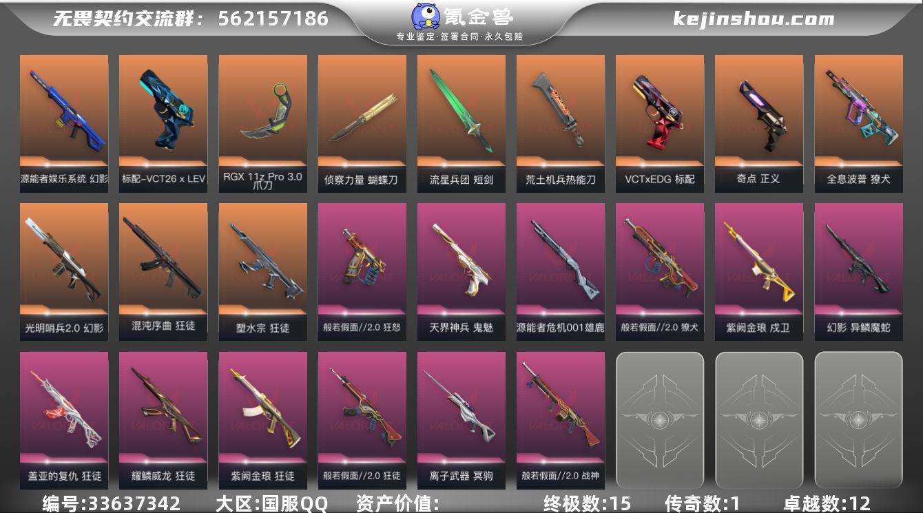 【959210】15橙皮 1金皮 12紫皮 94皮肤 29英雄 124卡面 1230已用源晶 黄金段位 可二次 可修改实名 【套装】般若假面//2.0套装,VCT 2026队伍礼包 【近战武器皮肤】鬼丸国纲,荒土机兵热能刀,短剑-流星兵团,蝴蝶刀-侦察力量,剥皮小刀,爪刀-RGX 11z Pro 3.0,盖亚之愠,落英飞旋 【佩枪皮肤】标配-VCT26 x LEV,狂怒-般若假面//2.0,正义-奇点,鬼魅-天界神兵,标配-VCTxEDG 【霰弹枪皮肤】雄鹿-源能者危机001 【步枪皮肤】幻影-异鳞魔蛇,獠犬-般若假面//2.0,狂徒-般若假面//2.0,狂徒-混沌序曲,狂徒-紫阙金琅,狂徒-塑水宗,狂徒-盖亚的复仇,狂徒-耀鳞威龙,幻影-光明哨兵2.0,幻影-源能者娱乐系统,戍卫-紫阙金琅,獠犬-全息波普 【狙击枪皮肤】冥驹-离子武器 【机枪皮肤】战神-般若假面//2.0 【挂饰】炼狱雪糕挂饰,冲上云霄挂饰,迷你浓缩挂饰,这瓜保熟挂饰,聚合之力挂饰,第八季:黄金挂饰,采蜜小蜂队挂饰,V26第一幕纪念币 挂饰,无畏契约GO!第一卷芮娜挂饰,无畏契约GO!第一卷零挂饰,聚宝蛋挂饰,无畏契约GO!第一卷贤者挂饰,般若假面//2.0挂饰,VCTxEDG挂饰,迷你机甲挂饰,针织蜜蜂挂饰,冬日絮语挂饰,糖葫芦挂饰,云开见日挂饰,VCTxLEV挂饰,幸运中国结挂饰,双城之战小蛋糕挂饰,完美图案挂饰,神中神...