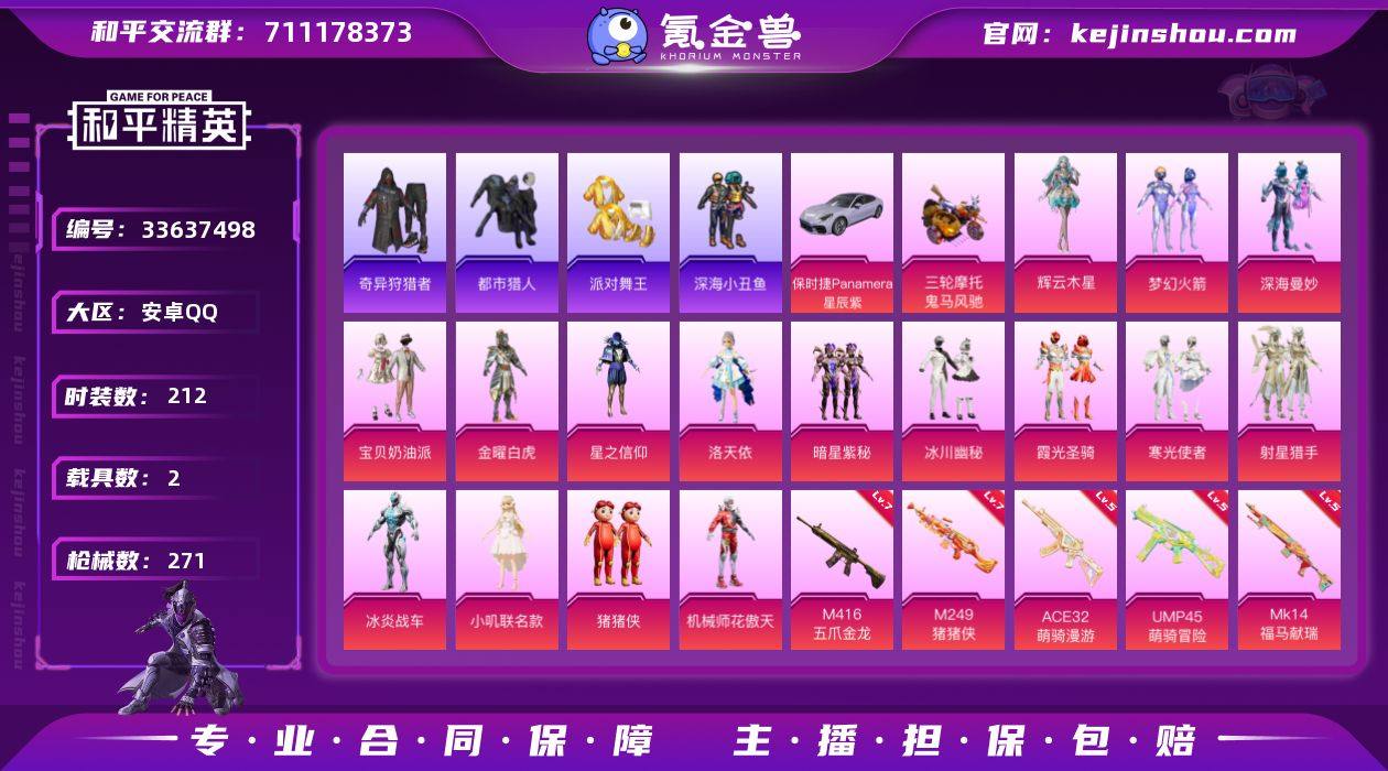【kyhp1944】安卓 手Q-16粉装-9特效枪-2载具-5粉色飞行器-92324热力值-13王牌印记-212套装-271枪皮 【热门品类】:粉装-梦幻火箭,套装-浪漫天命,套装-都市猎人,套装-派对舞王,套装-深海小丑鱼,套装-小丑鱼,套装-奇异狩猎者,角色-忠义严颜,套装-龟仙人,套装-粉红小猪,撬棍-龙胆亮银枪 【粉色套装】:粉装-深海曼妙,粉装-宝贝奶油派,粉装-金曜白虎,粉装-梦幻火箭,粉装-星之信仰,角色-洛天依,粉装-暗星紫秘,粉装-冰川幽秘,粉装-霞光圣骑,粉装-寒光使者,粉装-射星猎手,角色-冰炎战车,角色-小叽联名款,玩偶服-猪猪侠,粉装-机械师花傲天,角色-辉云木星 【粉色枪皮等级】:M416-五爪金龙(七级),ACE32-萌骑漫游(五级),UMP45-萌骑冒险(五级),AKS-74U-森灵之息(五级),P90-沙丘之主(三级),Kar98K-巳巳如意(五级),M24-镜域双华(三级),Mk14-福马献瑞(五级),M249-猪猪侠(七级) 【粉色载具】:保时捷Panamera(星辰紫),鬼马风驰 【粉色枪皮】:M416-五爪金龙,ACE32-萌骑漫游,UMP45-萌骑冒险,AKS-74U-森灵之息,P90-沙丘之主,Kar98K-巳巳如意,M24-镜域双华,Mk14-福马献瑞,M249-猪猪侠 【粉色飞行器】:梦幻火箭飞行器,齐天大圣飞行器,萌物绒绒飞...