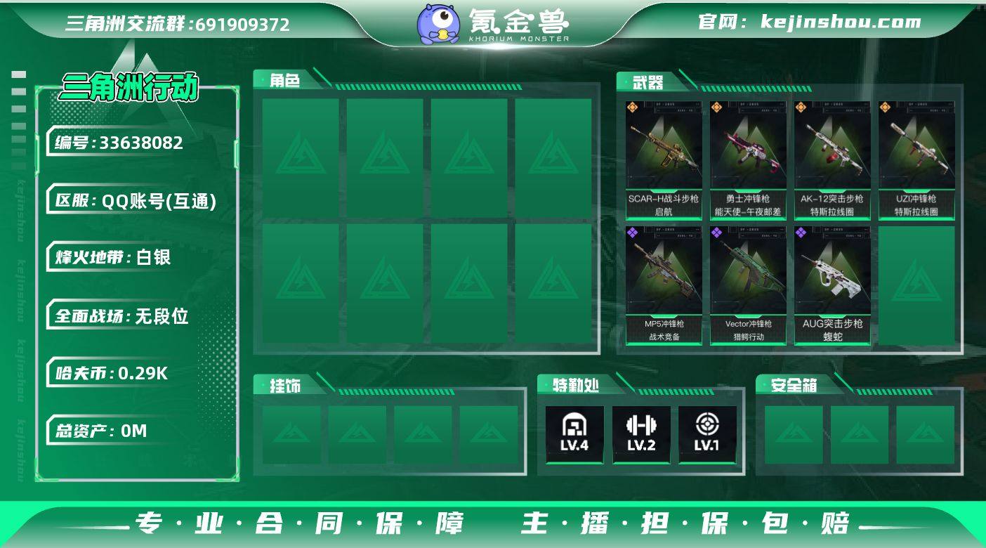 449总资产4m-295k哈夫币-36烽火等级-白银-1战场等级-无军衔 【近战皮肤】:近战-黑鹰【总资产4M,哈夫币295K,行动等级:36,枪皮:54】 【近战武器】 近战-黑鹰 【传说外观】:AK-12突击步枪-特斯拉线圈,SCAR-H战斗步枪-启航,UZI冲锋枪-特斯拉线圈,SR-3M紧凑突击步枪-特斯拉线圈,勇士冲锋枪-能天使-午夜邮差,M14射手步枪-缄花,SR-25射手步枪-缄花,.357左轮-缄花 【史诗外观】:AUG突击步枪-蝮蛇,MP5冲锋枪-战术竞备,Vector冲锋枪-猎鳄行动,M250通用机枪-囚徒SCAR-H战斗步枪-启航 M4A1突击步枪-隐秘行动 QBZ95-1突击步枪-海浪 QBZ95-1突击步枪-三角洲力量 K416突击步枪-高雅黑 AKM突击步枪-肃杀 SG552突击步枪-海浪 SCAR-H战斗步枪-数码迷彩 AK-12突击步枪-特斯拉线圈 M7战斗步枪-捣蛋鬼 SCAR-H战斗步枪-荣耀列队 M4A1突击步枪-零点 SV-98狙击步枪-哈夫克航天 SVD狙击步枪-战术行动 SMG-45冲锋枪-哈夫克卫队 Vector冲锋枪-几何迷彩 MP5冲锋枪-黄蜂 勇士冲锋枪-能天使·午夜邮差 UZI冲锋枪-特斯拉线圈 MP5冲锋枪-战术竞备 Vector冲锋枪-猎鳄行动 SMG-45冲锋枪-幻影结构