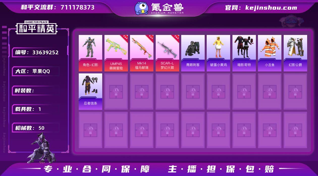 XS11551苹果手Q-1载具-4特效枪-28套装-50枪皮-2王牌印记-不朽星钻Ⅱ-14129热力值【1载具】双人摩托-梦幻火箭【4特效枪】AKS-74U-森灵之息[5级],SCAR-L-梦幻火箭[5级],UMP45-萌骑冒险[3级],Mk14-福马献瑞[5级]【3稀有】小丑鱼,忍者信条,暗影哥特【2飞行器】马上有福飞行器,梦幻火箭飞行器【3头盔】幻影战神头盔,甜心宝贝头盔,梦幻火箭头盔【2背包】幻影战神背包,梦幻火箭背包【71其它衣服和枪皮】潮流炫酷,狙击之神,鹰眼刺客,遗迹猎人,书海巡游,绯格组合,青翼流星,朋克之心,军械专家,角色-都市丽猫,迅捷龙虾,破蛋小黄鸡,海岛探路者,SS38特训,红釉青花,SS36特训,福马献瑞,马上有钱,琴音绮想,幻影公爵,吉莉礼服,画境星梦,SS37特训,竞技名士,雨过天青,PKM-雨过天青,M16A4-雨过天青,M416-糯团青竹,Vector-彩虹符号,汤姆逊-幻影战神,Mini14-梦幻火箭,UMP45-生命誓言,Vector-荒原烈焰,蜜獾-天降萌叽,P90-紫矿核心,MG-36-薄荷星砂,汤姆逊-像素花束,GROZA-福马献瑞,MP5K-画境星梦,AA12-G-雨过天青,ACE32-画境星梦,AMR-雨过天青,S12K-夜灯,大砍刀-像素花束,AUG-甜蜜菠萝,AA12-G-画境星梦,AUG-幻影战神,平底锅-无垠阁,ACE32-冰晶雪宝,SCAR-L-夜灯,蜜獾-启元战纹,燃烧瓶-福马献瑞,MG3-火熔...