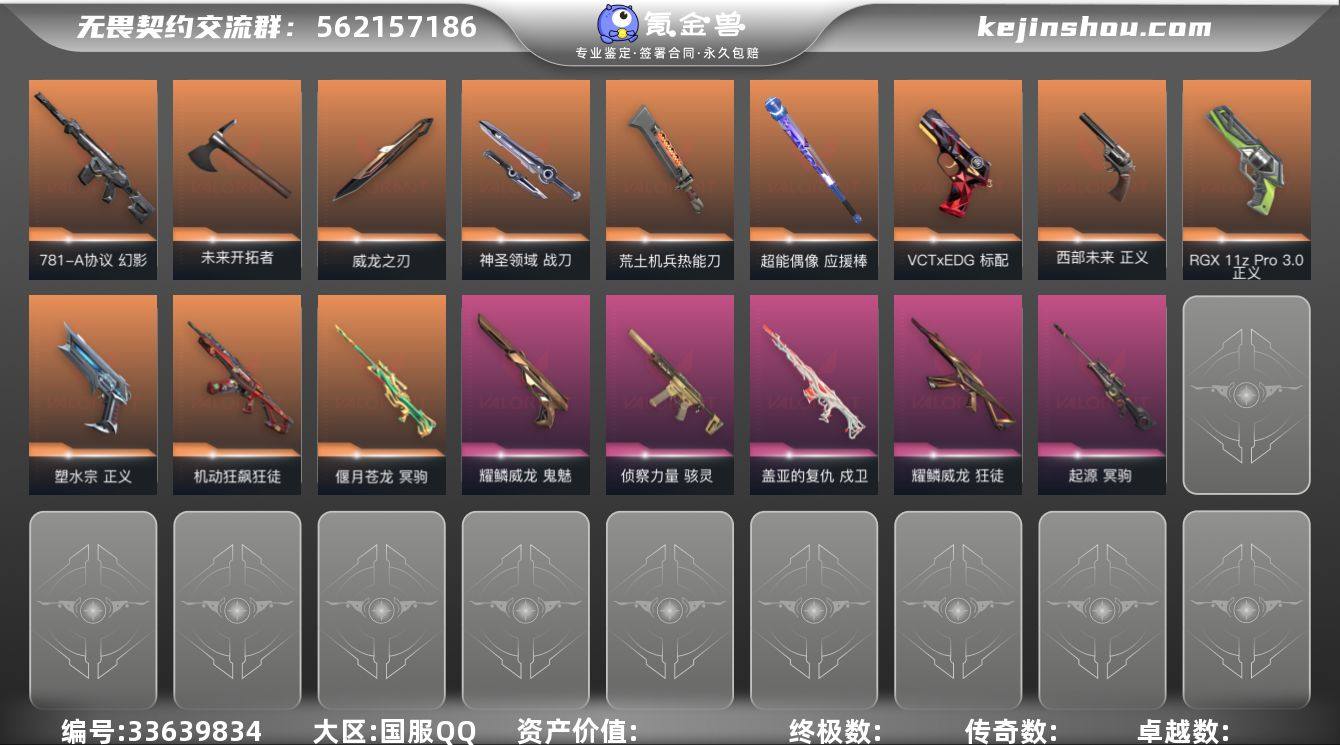 XSQY58【RGX3.0套 EDG套 西部未来套 耀鳞威龙套装】【游戏等级】Lv175 【段位】 黄金I 【R点】1,370 【皮肤总价值】39,540 【英雄数量】24 【皮肤数量】115 【挂饰数量】118 【卡面数量】160 【喷漆数量】155 【标配】标配-星际猎兵 标配-荒土机兵 标配-VCTxEDG 标配-浮光跃金 标配-超能偶像 标配-战术熊与伙伴们 标配-光导纤维 【近战武器】近战武器-神圣领域战刀 近战武器-未来开拓者 近战武器-荒土机兵热能刀 近战武器-超限闪存匕首 近战武器-超能偶像应援棒 近战武器-RGX11zPro//3.0爪刀 近战武器-流星兵团短剑 近战武器-珍珠棘贝短剑 近战武器-钢轨卫士战锤 近战武器-威龙之刃 【鬼魅】鬼魅-星云暗涌 鬼魅-模拟赫兹 鬼魅-采蜜小蜂队 鬼魅-流星兵团 鬼魅-光导纤维 鬼魅-耀鳞威龙 【冥驹】冥驹-星云暗涌 冥驹-荒土机兵 冥驹-起源 冥驹-模拟赫兹 冥驹-偃月苍龙 冥驹-复古浪潮 【戍卫】戍卫-月球哨兵 戍卫-逆冲蛮牛 戍卫-浮光跃金 戍卫-超能偶像 戍卫-盖亚的复仇 戍卫-战术熊与伙伴们 戍卫-珍珠棘贝 戍卫-钢轨卫士 【幻影】幻影-西部未来 幻影-神圣领域 幻影-纳米打击 幻影-超限闪存 幻影-聚合之力 幻影-珍珠棘贝 幻影-781-A协议 幻影-战术小伙伴 【飞将】飞将-西部未来 飞...