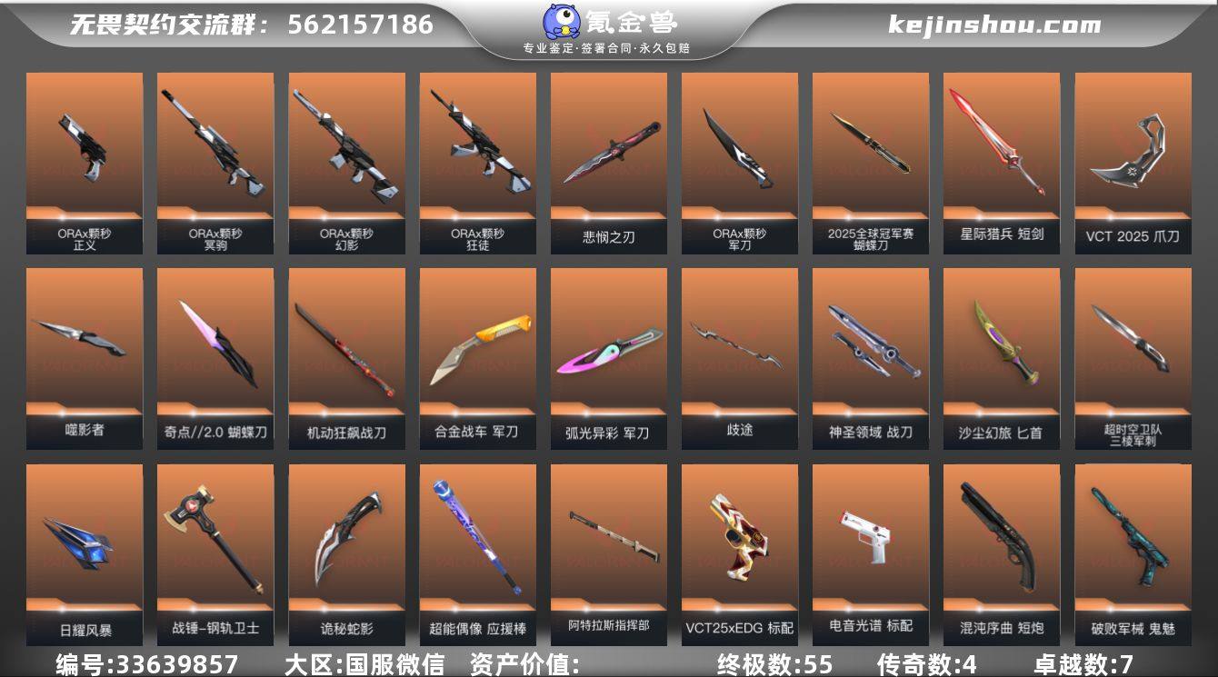 【958898】55橙皮 4金皮 7紫皮 221皮肤 29英雄 276卡面 2495已用源晶 超凡段位 可二次 可修改实名 【亮点皮肤】狂徒-2021全球冠军赛,爪刀-2021全球冠军赛,幻影-2024全球冠军赛,幻影-2022全球冠军赛,蝴蝶刀-2022全球冠军赛,悲悯之刃 【套装】2021全球冠军赛套装,VCT 2025赛季礼包,VCTCN2025套装,创·纪元套装,ORAx颗秒,2025全球冠军赛,2022全球冠军赛,机动狂飙套装,塑水宗套装,破败军械套装 【近战武器皮肤】蝴蝶刀-奇点//2.0,镭切,战锤-钢轨卫士,2025全球冠军赛 蝴蝶刀,神圣领域 战刀,歧途,星际猎兵 短剑,阿特拉斯指挥部,超时空卫队 三棱军刺,日耀风暴 遗器,诡秘蛇影,噬影者簇刃,VCT 2025 爪刀,碎心裂刃,蒙太奇 战斧,悲悯之刃,ORAx颗秒 军刀,黑波之刃,机动狂飙战刀,破败王者之残刃,匕首-沙尘幻旅,超能偶像 应援棒,军刀-弧光异彩,军刀-合金战车 【佩枪皮肤】标配-电音光谱,正义-西部未来,正义-ORAx颗秒,超集系统 标配,风暴之子 正义,蒙太奇 狂怒,正义-创·纪元,短炮-混沌序曲,标配-VCT25xEDG,正义-塑水宗,正义-千灵华绽,正义-机动狂飙,鬼魅-破败军械 【冲锋枪皮肤】骇灵-创·纪元,蜂刺-机动狂飙,骇灵-破败军械,骇灵-塑水宗,蒙太奇 骇灵 【霰弹枪皮肤】风暴之子 雄鹿,雄鹿-机动狂...