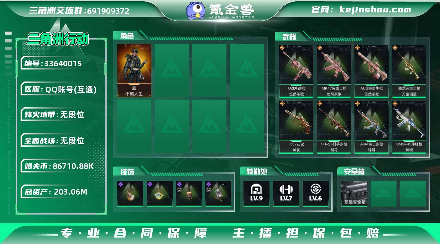 三角洲行动成品号|安卓qq客户端 可二次 行动等级60,总资产203.1M,哈夫币7024.2W 23个六甲 干员皮肤有不羁人生、缄花捆绑包、锦绣捆绑包、悠然茶歇捆绑包 三角币和三角券都在,具体看图 账号安全,细节可聊 喜欢直接拍,随时在线~ 可小刀