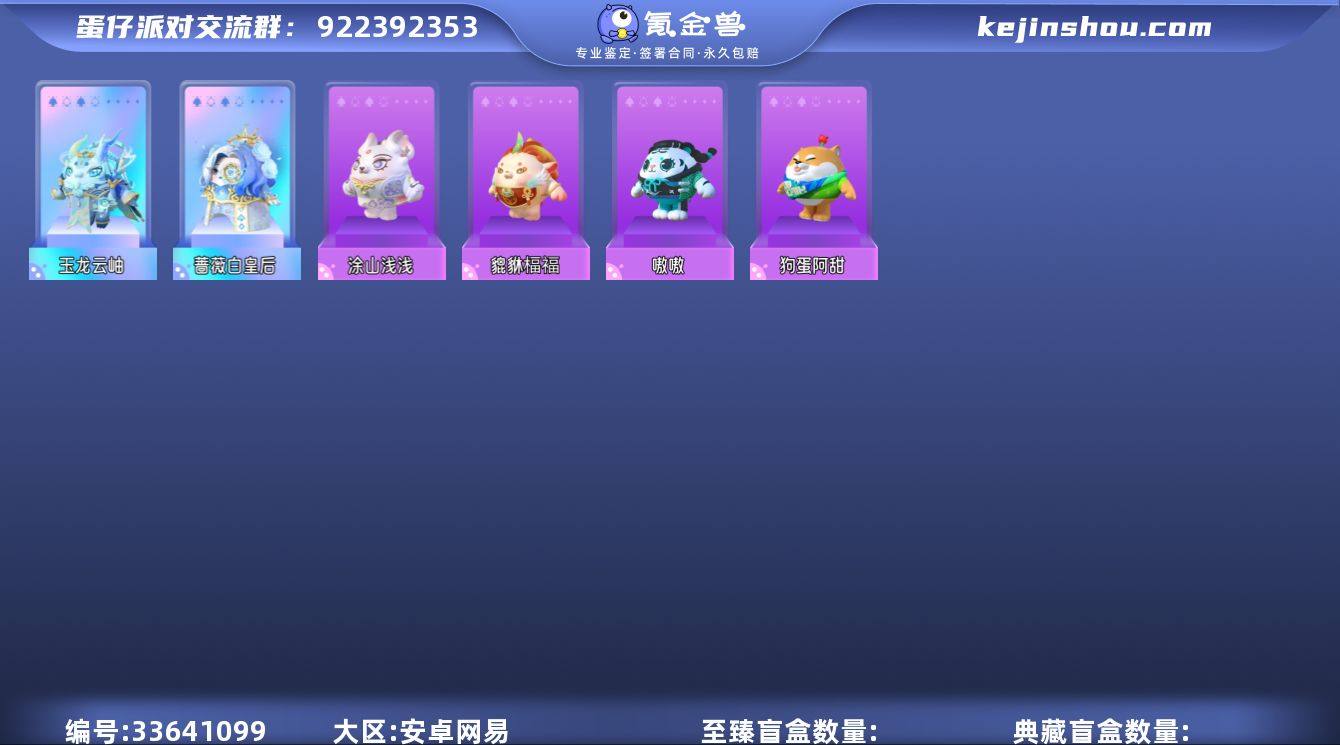 紫皮:DongDong,蜜蜂 DongDong, 冷面千金竹月,劝学小子,渡鸦阿舍尔,幽猎塞莉诺,石心船长苏勒,打菜侠妙妙,狼执事柯尔特,小福袋添运,面包狗松松,小浮冰,狸猫大力,失心熊,仓鼠米仔,吉他手卡萝,虎皮卷大灰狼,饶舌诗人,超燃蛋小红,大娃,发美美,猴吼吼,豫剧少女嫣然,京剧少年封闭,莓莓甜心兔,鲤鱼姬小锦,熊二,熊大,啄木鸟琳达,音乐家蕾利,飞天小猪班尼,企鹅心心,暹罗猫,极光女神典伊,北极狐卢比,雪怪瓦图鲁,北极兔卢米,陆小果,元气丸子,小太阳葵葵,蓝舞鞋瑞拉,剧院首席露希,道具师芙芙,小演员露希,猪猪侠,松鼠多栗,袋鼠嘟宝,沸羊羊,美羊羊,小灰灰,魔灯闪闪,洗澡 DUCKOO, 刺猬绷绷,吟游诗人弥亚,食梦公爵莱斯,古董商,海藻偷偷,雪王,星云咩咩,流浪小象哆哆,彩虹水波蛋,小猪妖,仙人掌丘丘,菜鸟笨笨,机械师维迪,航天员莱卡,茨木童子,催眠师困困,三角龙小萨,甲龙晶晶, 上官子怡,菠萝吹雪,橙留香,云村音音,...