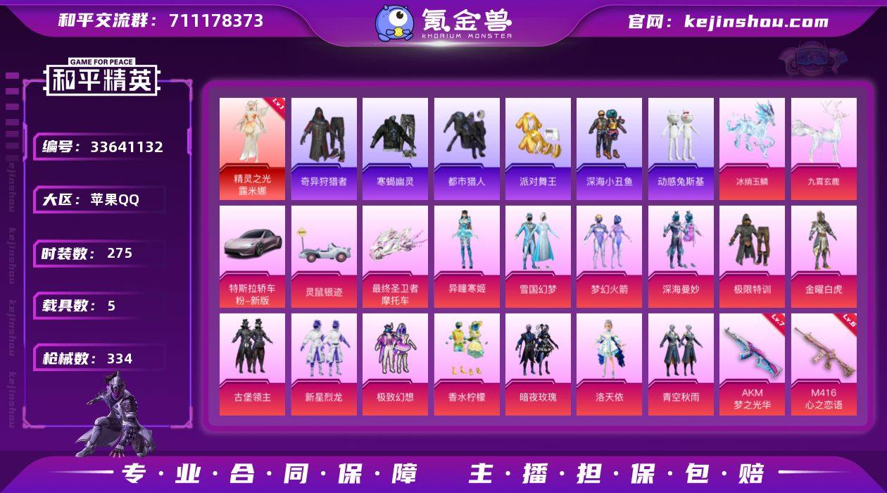 苹果 手Q-无敌战神框-1神装-13粉装-12特效枪-5载具-15粉色飞行器-117531热力值-19王牌印记-275套装-334枪皮 【红色神装等级】:精灵之光-露米娜(一级) 【红色角色神装】:精灵之光-露米娜 【热门品类】:粉装-雪国幻梦,粉装-梦幻火箭,套装-寒蝎幽灵,套装-浪漫天命,套装-都市猎人,套装-派对舞王,套装-深海小丑鱼,套装-小丑鱼,套装-奇异狩猎者,套装-金羽特工,套装-动感兔斯基人偶服,套装-AG战队服,套装-暗夜之虎,旭日初心兜帽大衣,套装-潮萌小黄鸭,套装-暗影哥特,套装-浪漫波比,套装-红熊茄茄 【粉色套装】:粉装-深海曼妙,粉装-极限特训,粉装-金曜白虎,粉装-雪国幻梦,粉装-梦幻火箭,粉装-古堡领主,粉装-新星烈龙,粉装-极致幻想,粉装-香水柠檬,粉装-暗夜玫瑰,角色-洛天依,粉装-青空秋雨,角色-异瞳寒姬 【粉色枪皮等级】:AKM-梦之光华(七级),M416-心之恋语(六级),M416-灵猫魔法师(三级),GROZA-精灵之光(三级),AUG-星之彼岸(六级),ACE32-萌骑漫游(二级),Vector-绯穹魔姬(五级),AKS-74U-森灵之息(五级),Kar98K-巳巳如意(五级),Mk14-福马献瑞(五级),DP-28-豹影疾电(五级),MG3-洛神天依(三级) 【粉色载具】:特斯拉Roadster(沁心粉),灵...