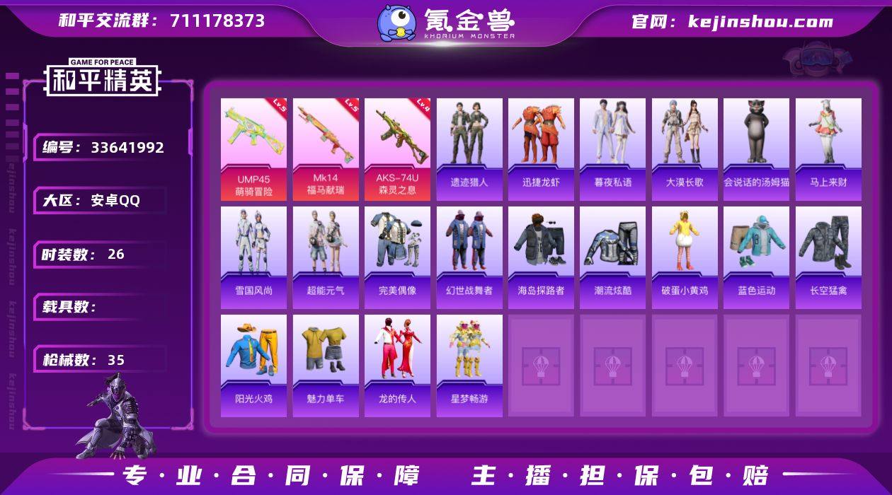 【HPF408】26套装/枪械3/装备37/战备28/王牌印记1/热力值9058/五级UMP45-萌骑冒险/四级AKS-74U-森灵之息/五级MK14-福马献瑞/UMP45-萌骑冒险/AKS-74U-森灵之息/MK14-福马献瑞/极意拳锋飞行器/炫彩糖果降落伞/超能元气/雪国风尚/马上来财/大漠长歌/暮夜私语/迅捷龙虾/遗迹猎人/会说话的汤姆猫/AUG-冰晶雪宝/AKM-星之彼岸/M16A4-绒绒猫尾/SCAR-L-夜灯/M416-蓝色火焰/蜜獾-虎痴许褚/UMP45-夜灯/UMP45-蓝色火焰/汤姆逊-绒绒猫尾/M24-炫彩节奏/S12K-夜灯/M249-绒绒猫尾/MG3-幻世战舞者/完美偶像/幻世战舞者/海岛探路者/潮流炫酷/破蛋小黄鸡/蓝色运动/长空猛禽/阳光火鸡/魅力单车/龙的传人/星梦畅游