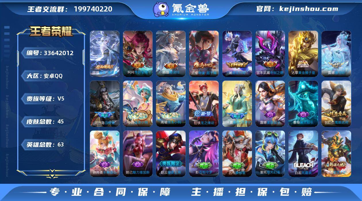 【精品号手慢无】可秒换绑!!45皮精氪小号!!珍品传说(1) 器灵·落星盏;7传说皮。5个性按键,铭文不全 介意勿拍哦~ 2295星币,v5