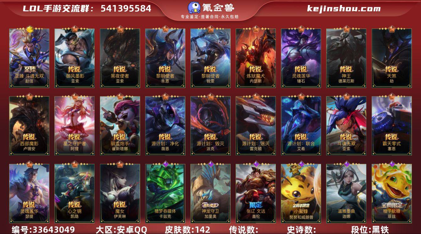 【LSC657】120英雄/142皮肤/流光翡翠/至臻 斗魂无双/夜星流火 金克丝/流光仙韵 莫甘娜/乘龙破渊 李青/玄龙绛天 易/张辽文远/心之钢凯隐/源计划:净化/魔女伊芙琳/黑夜使者亚索/斗魂无双亚索/御风墨影 亚索/星之守护者阿狸/天煞劫/西部魔影卢锡安/驯龙炮手/炼狱魔犬/灵魂莲华腕豪/黎明使者永恩/神王诺手/源计划:联合/黎明使者锐雯/源计划:泯灭/源计划:毁灭/霸天零式塞恩/灵魂莲华锤石/钢铁军团/张辽 文远/腥红之月剑魔/星之守护者拉克丝/惊悚派对/殇之机器人/黑夜使者凯隐/小蜜蜂努努和威朗普/腥红之月皎月/焕影迎春佐伊/霸天异形螳螂/猎梦吞噬体 卡兹克/清剿小队金克丝/蕊雪盈春:晏安 赫卡里姆/猛虎布隆/圣诞老人/礼物选好了吗? 布隆/霸天龙神龙王/弹幕天使/电玩女神卡莎/斗魂无双尼菈/魅惑女巫莫甘娜/猎龙勇士潘森/铁血女忍/源计划:火/源计划:阴/灵能特工劫/源计划:雷/我,羽饰骑士 崔丝塔娜/小蜜蜂提莫/泳池派对璐璐/驯龙女巫/永恒之森 霞/太空律动“百万调音”/福牛守护者皇子/魅惑女巫女枪/禁卫机甲/魅惑女巫风女/温雅墨曲 迦娜/斗魂无双德莱文/霸天巨兽石头人/冰川巨兽石头人/暗星墨菲特/虚空海灵/绒毛/柚子软糖/玉剑传说 舞剑仙/斗魂无双 艾瑞莉娅/死亡誓约卡特/...