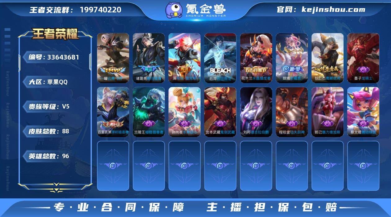 V5 4传说 96英雄 88皮肤 可二次 可修改实名 女号
