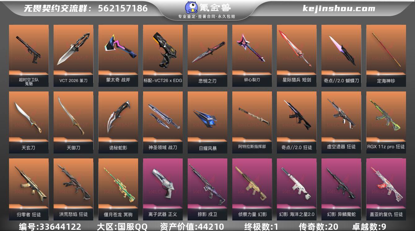 段位: 未定级 亮点皮肤: 悲悯之刃 近战武器皮肤: 天玄刀-天界神兵,定海神珍-盖世英雄,天御刀-天界神兵//2.0,蝴蝶刀-奇点//2.0,神圣领域 战刀,诡秘蛇影,日耀风暴,阿特拉斯指挥部,星际猎兵 短剑,碎心裂刃,无畏契约季前邀请赛 悲悯之刃,蒙太奇 战斧,VCT 2026 篆刀 步枪皮肤: 狂徒-盖亚的复仇,幻影-侦察力量,狂徒-归零者,狂徒-洪荒怒焰,狂徒-日冕雄师,狂徒-奇点//2.0,戍卫-掠影,幻影-异鳞魔蛇,幻影-海洋之星2.0,狂徒-虚空遗器,狂徒-离子武器2.0,狂徒-RGX 11z pro,超集系统 狂徒,蒙太奇 幻影,风暴之子 戍卫 佩枪皮肤: 正义-离子武器,鬼魅-超时空卫队,标配-VCT26 x EDG,超集系统 标配,风暴之子 正义,蒙太奇 狂怒 狙击枪皮肤: 冥驹-偃月苍龙,冥驹-堕天遗武,风暴之子 冥驹,超集系统 飞将 冲锋枪皮肤: 蒙太奇 骇灵 霰弹枪皮肤: 风暴之子 雄鹿 机枪皮肤: 蒙太奇 战神 亮点: 【优质装备】:悲悯之刃,冥驹-偃月苍龙,狂徒-归零者,狂徒-盖亚的复仇,幻影-侦察力量,冥驹-堕天遗武,狂徒-洪荒怒焰,正义-离子武器,狂徒-日冕雄师,狂徒-奇点//2.0,狂徒-RGX 11z pro,戍卫-掠影,天玄刀,定海神珍,天御刀,蝴蝶刀-奇点//2.0,神圣领域 战刀,诡秘蛇影,日耀风暴 遗器,阿特拉斯指挥部,星际猎兵 短剑