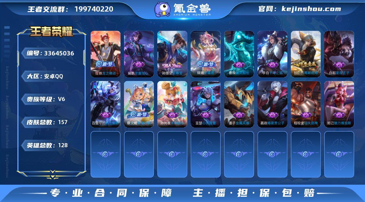 [18932509]V6 1典藏 128英雄 157皮肤 可二次 可修改实名 男号