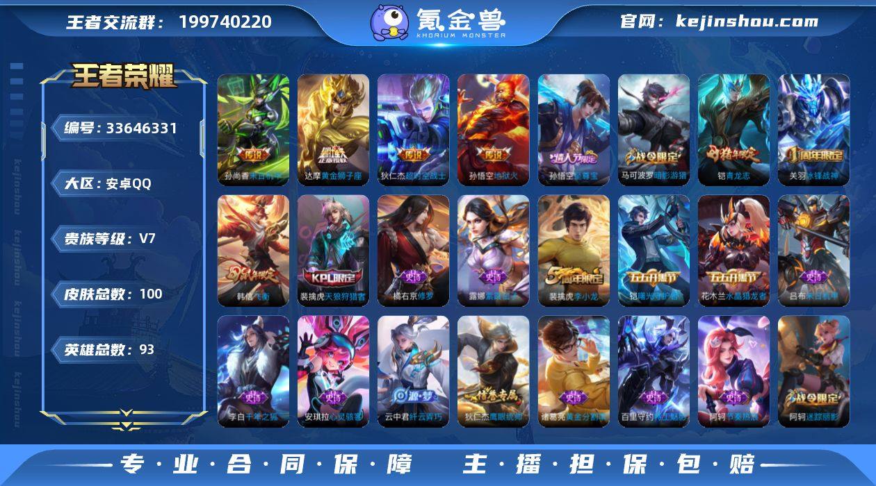至尊宝有二次安卓Q-V7-秩序白银III段位-92英雄-100皮肤-4传说-32史诗TD2641803 【传说皮肤】:达摩黄金狮子座,孙尚香末日机甲,孙悟空地狱火,狄仁杰超时空战士 【限定皮肤】:狄仁杰阴阳师,赵云皇家上将,阿轲迷踪丽影,马可波罗暗影游猎,狄仁杰魔术师,狄仁杰万华元夜,达摩星际陆战队,项羽海滩派对,老夫子醍醐杖,关羽冰锋战神,刘邦夺宝奇兵,韩信飞衡,孙悟空至尊宝,李元芳银河之约,女娲朔望之晖,鬼谷子原初探秘者,铠青龙志,弈星混沌棋,沈梦溪星空之诺,裴擒虎天狼狩猎者,裴擒虎李小龙,云中君纤云弄巧,盾山御銮,猪八戒西部大镖客 【年限皮肤】:铠青龙志,韩信飞衡 【赛季限定】:盾山御銮,弈星混沌棋,老夫子醍醐杖,鬼谷子原初探秘者,狄仁杰万华元夜 【战令限定】:女娲朔望之晖,李元芳银河之约,沈梦溪星空之诺,阿轲迷踪丽影,刘邦夺宝奇兵,马可波罗暗影游猎,猪八戒西部大镖客,达摩星际陆战队 【史诗皮肤】:云中君纤云弄巧,裴擒虎李小龙,马可波罗暗影游猎,橘右京修罗,阿轲迷踪丽影,韩信飞衡,李元芳银河之约,狄仁杰鹰眼统帅,裴擒虎天狼狩猎者,铠青龙志,阿轲节奏热浪,程咬金功夫厨神,铠曙光守护者,百里守约特工魅影,安琪拉心灵骇...