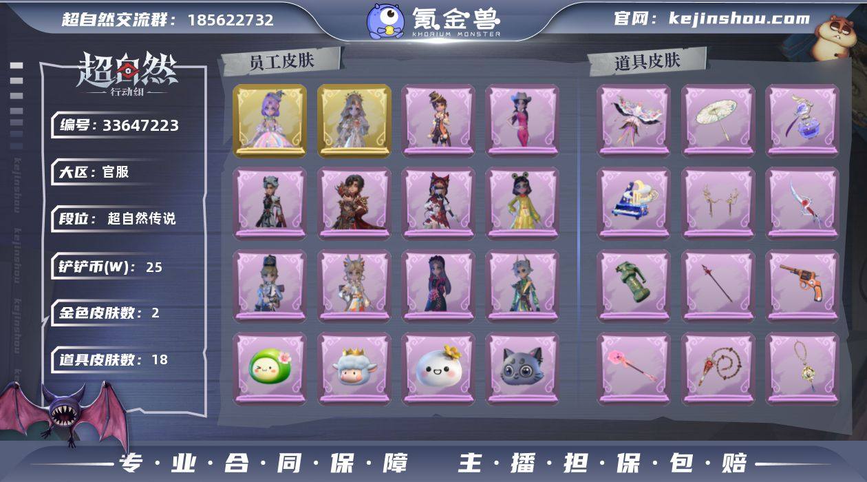 金皮2;紫皮10;道具皮18;皮肤:小黄-遗失的童话,薇薇安-圣光之谕,阿念-王子与骑士,莉莉-莓果陷阱,小黄-呱呱雨衣,零-搬开山,爱丽丝-耀眼的你,阿念-灵昭鹿鸣,阿念-庆宴绮愿,艾伦-黎明猎手,逍遥-泽引山海,爱丽丝-丝缕哀歌;道具:喷气背包-云鸢锦绣,闪光弹-金戈玄铜,摸金符-祝祷词,摸金符-紫霄,急救包-蔷薇物语,刺刀-铂刺与红萼,铲子-赞萌波板糖,转轮手枪-新星时代,伞-郁金春信,长枪-罪棘,腰包-私藏的银河,腰包-宝剑八,音响-月光奏鸣曲,夜视仪-敛花容,黄牛能量饮料-无人岸,短管猎枪-星光的裁决,音响-鸣沙鼓,长鞭-缚誓之锁;饰品:头饰-饺饺者头套,头饰-青团糯糯,头饰-马上有钱,头饰-精致露比头套,头饰-芝麻糊汤圆,头饰-樱桃奶油布丁,头饰-小羊的王子梦,头饰-哈士奇头套,头饰-滑稽头套,头饰-烛光纪念,头饰-蒜了八,头饰-嘻嘻头套,头饰-呆滞头套,头饰-火爆了头套,头饰-咬咬鲨头套,头饰-惊魂南瓜头套,头饰-烈焰红唇头套,头饰-雪墩墩头套,头饰-太空鲨头套,头饰-鱼头怪头套,头饰-萨卡班甲鱼头套,头饰-面具马头套,头饰-大葱明头套,头饰-卑微头套,头饰-煤球喵头套,头饰-炙热烧烤,头饰-后室幸存者头套,头饰-像素朋克墨镜,挂饰-糖果守卫,挂饰-不朽的今夜,挂饰-尘封旧事,挂饰-九色祥鹿,挂...