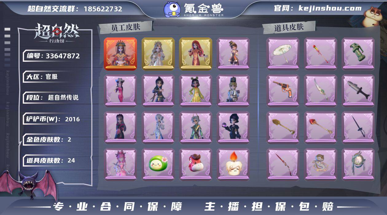 ZR954,红皮:1,金皮:2,紫皮:10,道具皮:24,外观:巫铃儿-镜生遗梦,薇薇安-圣光之谕,巫铃儿-镜花辞,巫铃儿-素影瑶光,阿念-王子与骑士,逍遥-泽引山海,爱丽丝-丝缕哀歌,爱丽丝-耀眼的你,阿念-庆宴绮愿,小黄-呱呱雨衣,逍遥-绣春逍影,薇薇安-黑月挽歌,莉莉-情公主,道具:葫芦-伏妖塔,黄牛能量饮料-青玉抱丹,短管猎枪-星光的裁决,腰包-宝剑八,音响-鸣沙鼓,额外的背包-飞花令,摸金符-祝祷词,长枪-糖葫芦霸王枪,传送按钮-昆仑镜,转轮手枪-新星时代,铲子-龙鳞,刺刀-小鲨匕首,音响-happy猫,摸金符-花落精绝,夜视仪-金丝眼镜,桃木剑-永眠曲,急救包-蔷薇物语,长鞭-小狗蛇点点鞭,铲子-圣心之泪,桃木剑-凤鸣九天,喷气背包-乘风溯雪,伞-郁金春信,闪光弹-金戈玄铜,刺刀-碧络琅环,饰品:头饰-芝麻糊汤圆,头饰-炙热烧烤,头饰-火爆了头套,头饰-滑稽头套,头饰-烛光纪念,头饰-驼半仙头套,头饰-鱼头怪头套,头饰-哈士奇头套,头饰-雪墩墩头套,头饰-烈焰红唇头套,头饰-咬咬鲨头套,头饰-马上有钱,头饰-小狗蛇点点头套,头饰-呆滞头套,头饰-卑微头套,头饰-大葱明头套,头饰-小财神豚豚头套,头饰-太空鲨头套,头饰-蒜了八,头饰-嘻嘻头套,头饰-萨卡班甲鱼头套,头饰-惊魂南瓜头套,头饰-青团糯糯,头饰-樱桃奶油布丁,头...