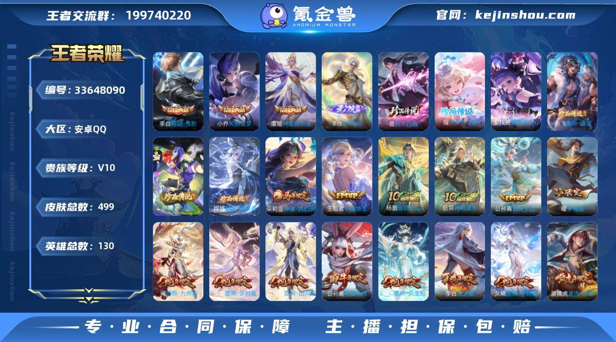 编号A01325 可二次 V10 499皮肤 3典藏 1无双 1小兵(狐妖小红娘) 8星传说 2天幕(棉花糖聚会 纸笺情愫) 52按键 6珍品传说 64传说 碎月剑心 天鹅之梦 神鉴启示录 鸣剑·曳影 大耳狗之梦 酷洛米之心 朽木白哉 兔狲·蓬尾 孙策-时之奇旅 器灵·落星盏 李逍遥 凤求凰 时之祈愿女 神威 神骥·鸣幻洲 愿照·福禄聚 愿照·众生和 愿照·千秋盛 愿照·九州拓 愿照·山河定 愿照
