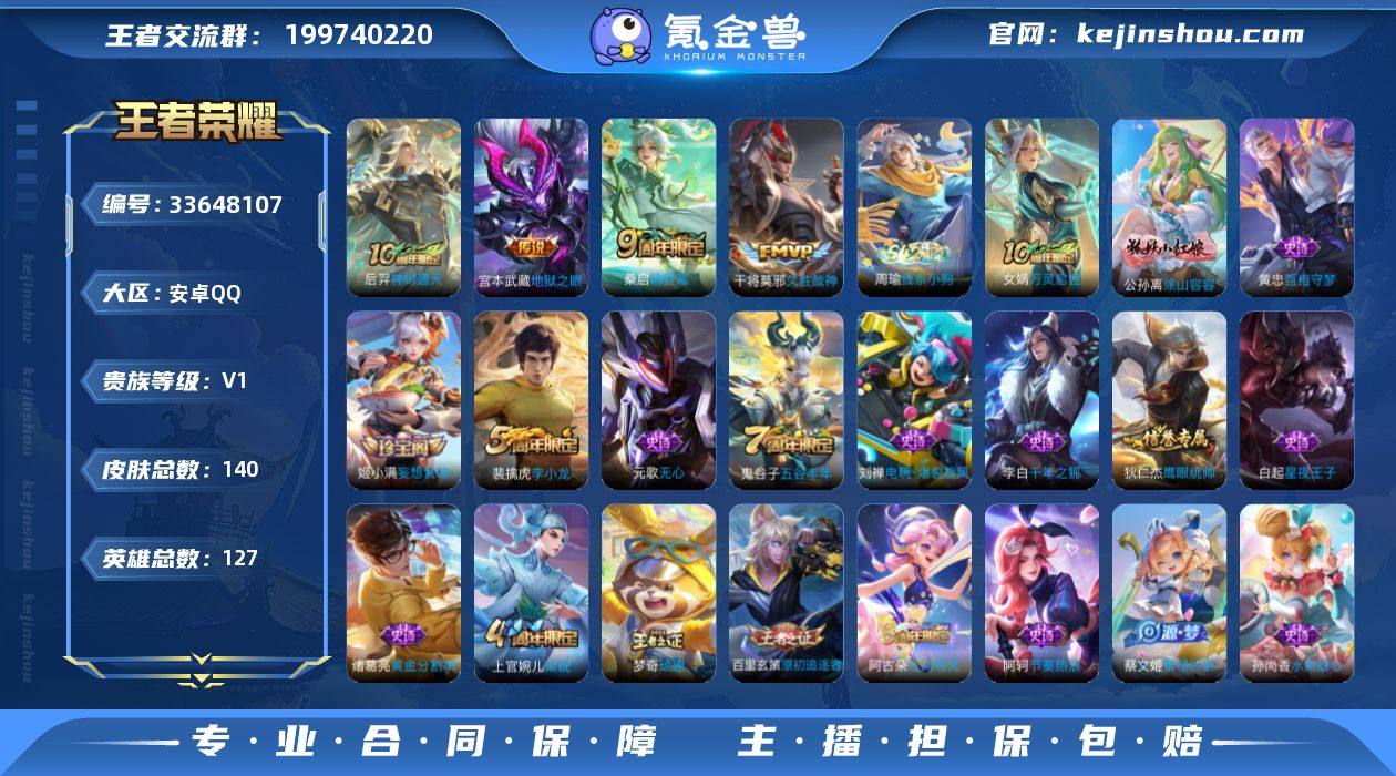 安卓Q-V0-尊贵铂金IV段位-127英雄-140皮肤-4传说-26史诗 【英雄全皮】:孙权全皮 【传说皮肤】:后羿神树通天,桑启鸣野蒿,干将莫邪久胜战神,宫本武藏地狱之眼 【限定皮肤】:姜子牙天穹之誓,狄仁杰阴阳师,元歌无心,狄仁杰万华元夜,达摩沙漠行僧,项羽海滩派对,程咬金演武夺筹,兰陵王金庭之子,李元芳云中旅人,钟馗驱傩正仪,干将莫邪胡桃夹子,蔡文姬繁星吟游,太乙真人饕餮,鬼谷子原初探秘者,鬼谷子五谷丰年,苏烈千军破阵,百里玄策原初追逐者,弈星混沌棋,梦奇顽趣,沈梦溪大漠名商,明世隐疑决卦,裴擒虎李小龙,裴擒虎擒涛扼浪,狂铁御狮,米莱狄御霄,上官婉儿梁祝,鲁班大师探海日志,桑启海盐诗旅,阿古朵江河有灵,张良古海寻踪,蒙恬荣光圣徽,鬼谷子天穹祈灯,姬小满妄想食味,刘邦剑破天穹,周瑜熔金海岸 【赛季限定】:太乙真人饕餮,狂铁御狮,米莱狄御霄,弈星混沌棋,明世隐疑决卦,鬼谷子原初探秘者,狄仁杰万华元夜,程咬金演武夺筹,钟馗驱傩正仪,苏烈千军破阵,达摩沙漠行僧,兰陵王金庭之子,沈梦溪大漠名商,李元芳云中旅人,桑启海盐诗旅,裴擒虎擒涛扼浪,鲁班大师探海日志,张良古海寻踪,鬼谷子天穹祈灯,刘邦剑破天穹,姜子牙天穹之...
