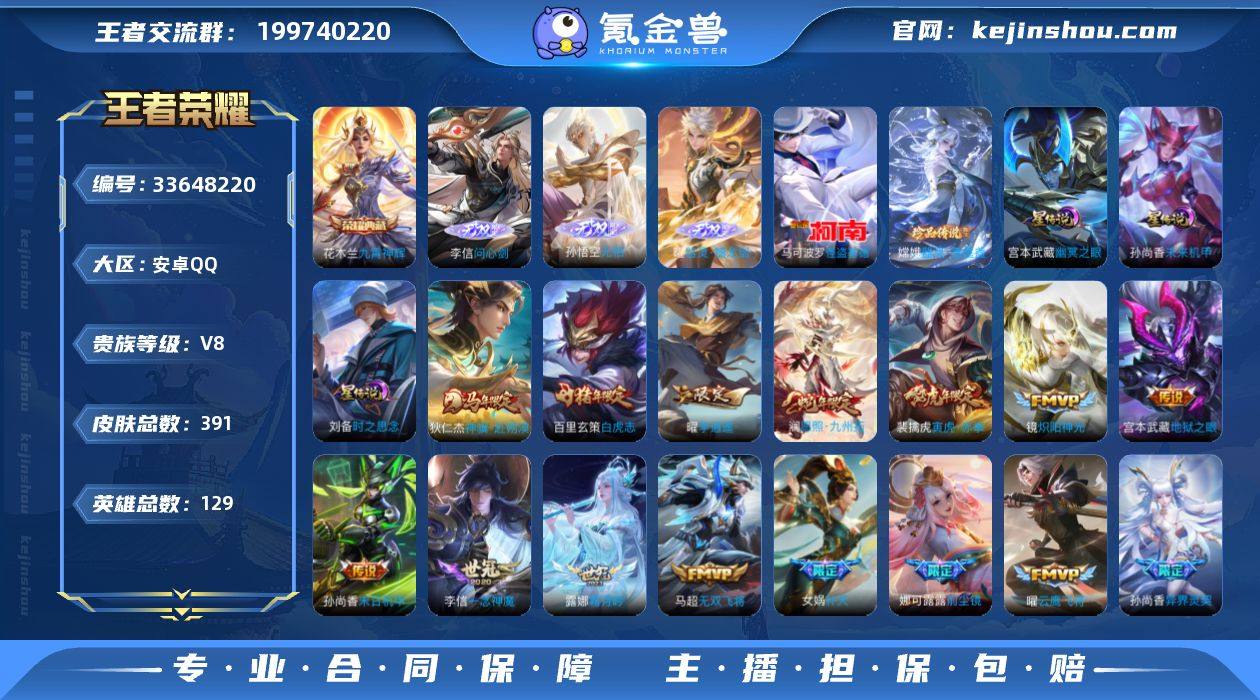 129英雄-391皮肤--V8-1典藏3无双2珍品传说28传说 打野33段 发育路30段 金标狂铁 3星传说时之思念 幽冥之眼 未来机甲 【全皮英雄】 娜可露露全皮 鬼谷子全皮 狂铁全皮 金蝉全皮 猪八戒全皮 【典藏】 九霄神辉 【无双】 无相 器灵螭龙剑 问心剑 【珍品传说】 器灵落星盏 怪盗基德 【传说】 神骥赴朔漠 幻光神枪 愿照九州拓 鸣野蒿 白虎志 启明星使 寅虎赤拳 李逍遥 前尘镜 异界灵契 启示之音 挚爱之约 补天 霜月吟 妄想实况 淬星耀世 音你闪耀 无双飞将 怒海麟威 炽阳神光 云鹰飞将 久胜战神 一念神魔 黄金射手座 时之恋人男 地狱之眼 末日机甲女 末日机甲策 【热门】涂山容容 至尊宝 白虎志 谪仙醉月 龙胆 后羿如梦令 默契交锋女 引擎之心 青春决赛季 时之彼端 百木心枪 女儿国国王 唐三藏 拒霜思 匿光追影者 玉兔公主 猪悟能 星空之诺 银河之约 冰冠公主 暗影游猎 原初追逐者 黎明之约 梁祝 云间偶戏 苍穹之光 暗夜猫娘 电玩小子 龙骑士 织梦人 黄忠百相守梦 灵蛊蚀心 绮世丹青 器灵浮梦炉 群星魔术团上官婉儿 百解令 匿光破解者 天秀音浪 天秀启明 遇见神鹿 唤灵魅影 原初探秘者 李小龙 水晶猎龙者 暗隐猎兽者 猫狗日记男 猫狗日记女 金属风暴 地狱岩魂 特工魅影 曙光守护者...