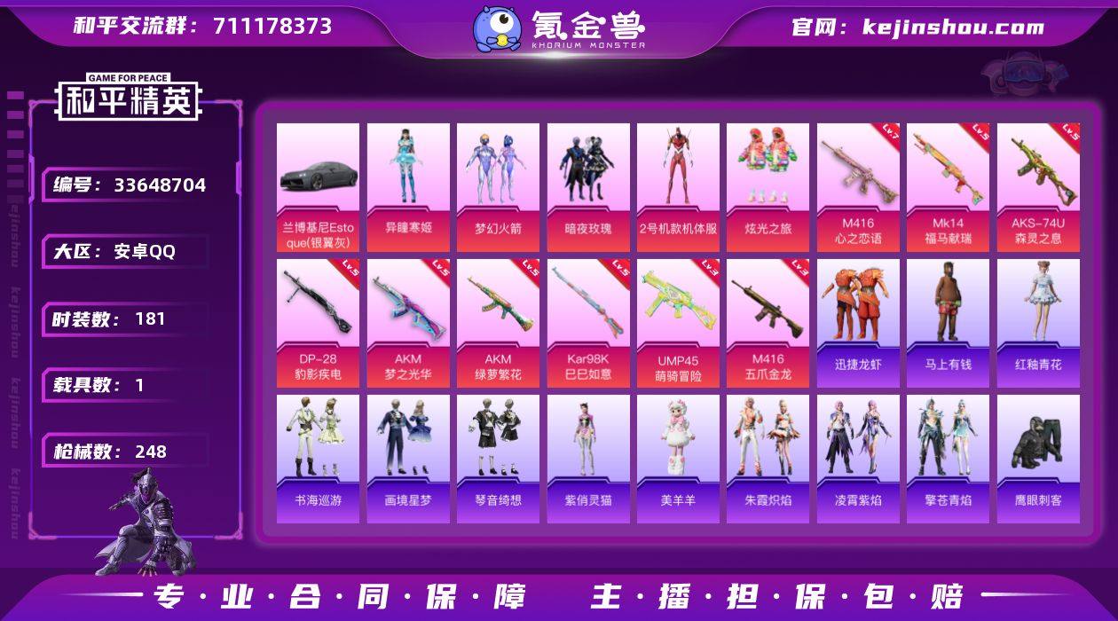 红螳螂+梦幻火箭+红眼罩 无二次 安卓 手Q-5粉装-9特效枪-1载具-3粉色飞行器-76314热力值-10王牌印记-181套装-248枪皮 LK2641811 【热门品类】:粉装-梦幻火箭,套装-浪漫天命,套装-小丑鱼,套装-金羽特工,套装-忍者信条,角色-2P战斗服款,套装-暗影哥特 【粉色套装】:粉装-梦幻火箭,粉装-暗夜玫瑰,角色-2号机款机体服,粉装-炫光之旅,角色-异瞳寒姬 【粉色枪皮等级】:AKM-梦之光华(五级),AKM-绿萝繁花(五级),M416-五爪金龙(三级),M416-心之恋语(七级),UMP45-萌骑冒险(三级),AKS-74U-森灵之息(五级),Kar98K-巳巳如意(五级),Mk14-福马献瑞(五级),DP-28-豹影疾电(五级) 【粉色载具】:兰博基尼Estoque(银翼灰) 【粉色枪皮】:AKM-梦之光华,AKM-绿萝繁花,M416-五爪金龙,M416-心之恋语,UMP45-萌骑冒险,AKS-74U-森灵之息,Kar98K-巳巳如意,Mk14-福马献瑞,DP-28-豹影疾电 【粉色飞行器】:炫彩糖果飞行器,梦幻火箭飞行器,极意拳锋飞行器 【粉色降落伞】:幻影战神降落伞,梦幻火箭降落伞,古堡领主降落伞,星之彼岸降落伞,筑梦精灵降落伞,环太平洋降落伞,未来歌姬降落伞,闲梦青缨降落伞,莲影清波降落伞,圣堂之誓降落伞,千金淑猫降落伞,异瞳寒姬...