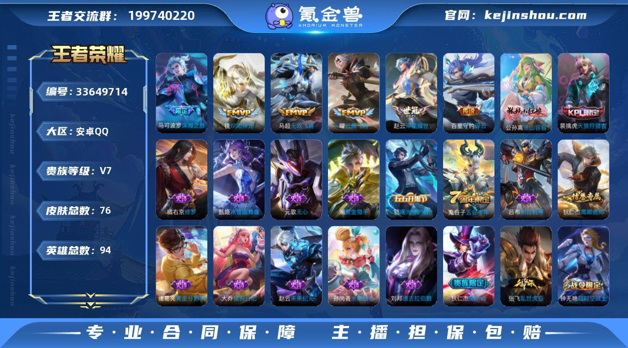 【XY1463】贵族等级7/传说皮肤数量6/史诗皮肤数量21/皮肤数量76/英雄数量94/段位荣耀黄金/碎云/深海之息/无双飞将/淬星耀世/炽阳神光/云鹰飞将/阴阳师/皇家上将/超时空战士-钟无艳/无心/落雪兰心/魔术师/海滩派对/午后时光/云中旅人(s29)/五谷丰年/大漠名商(s28)/天狼狩猎者/擒涛扼浪(s31)/探海日志(s32)/海盐诗旅(s30)/鬼谷子天穹祈灯(S34)/龙武盛年/剑破天穹(s35)/程咬金群星魔术团/逆浪荇歌/荣光之誓/涂山容容/赏金猎手/修罗/鹰眼统帅/猫狗日记-大乔/舞动绿茵/曙光守护者/黄金分割率/德古拉伯爵/乱世虎臣/末日机甲-吕布/魅力维加斯/水果甜心/冰雪圆舞曲/未来纪元-赵云/春野之旅/幻泉雾影-海月/危途狂花/潮玩造梦师/唤灵魔甲/乓乓大师/缤纷绘卷/炽热元素使/野性能量/海滩丽影/万象初新/花好人间/死亡骑士/红桃皇后/忍·炎影/白执事/大发明家/街头霸王/教廷特使/赤焰之缨/孤猎/归虚梦演-西施/森/灼热之刃/花见巫女/绝影神枪/第七人偶/芝加哥教父/三太子/激情绿茵/精灵王/西部大镖客-孙悟空/潮流仙人/绯红之刃