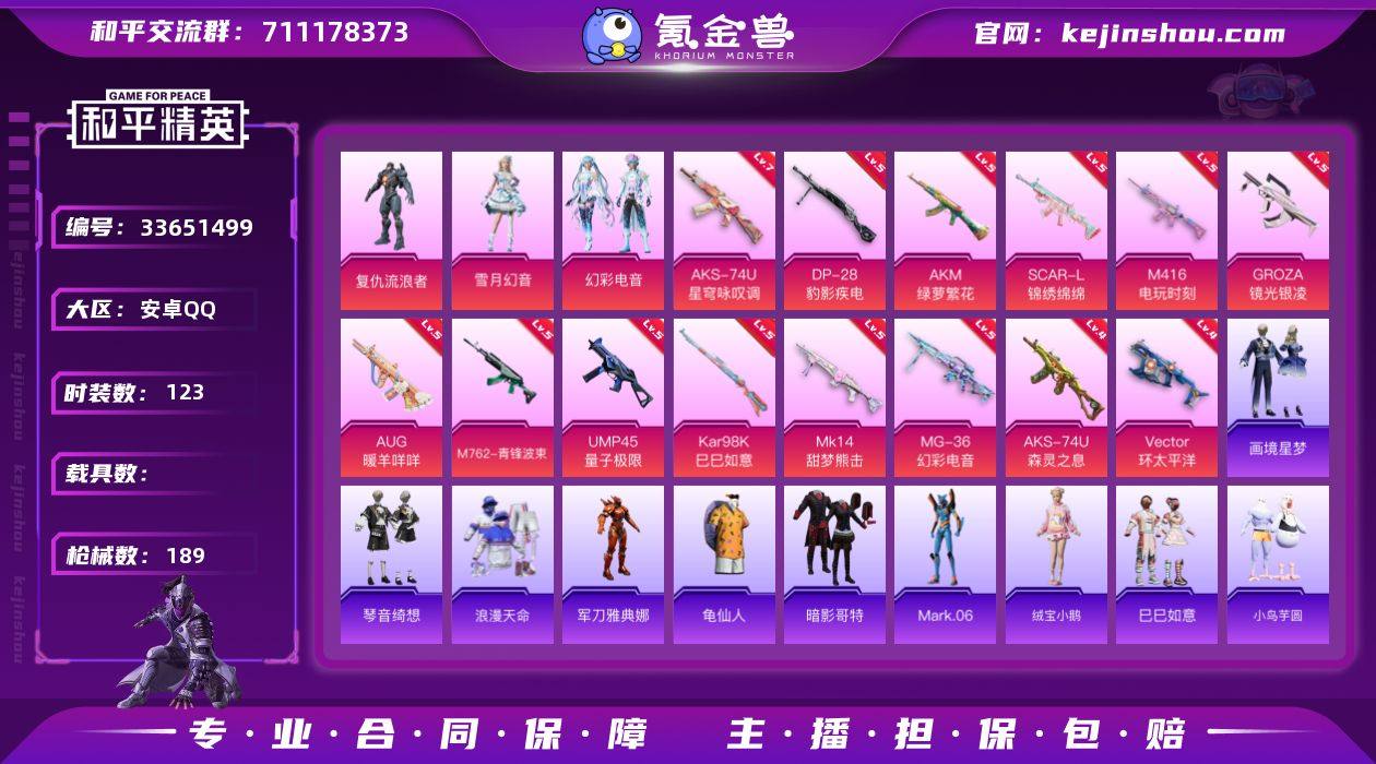 【kyhp126】安卓 手Q-3粉装-14特效枪-0载具-3粉色飞行器-54930热力值-7王牌印记-123套装-189枪皮 【热门品类】:套装-浪漫天命,角色-军刀雅典娜,套装-龟仙人,套装-暗影哥特,角色-Mark.06 【粉色套装】:角色-复仇流浪者,粉装-雪月幻音,粉装-幻彩电音 【粉色枪皮等级】:AKM-绿萝繁花(五级),SCAR-L-锦绣绵绵(五级),M416-电玩时刻(五级),GROZA-镜光银凌(五级),AUG-暖羊咩咩(五级),M762-青锋波束(五级),UMP45-量子极限(五级),Vector-环太平洋(四级),AKS-74U-星穹咏叹调(七级),AKS-74U-森灵之息(四级),Kar98K-巳巳如意(五级),Mk14-甜梦熊击(五级),DP-28-豹影疾电(五级),MG-36-幻彩电音(五级) 【粉色枪皮】:AKM-绿萝繁花,SCAR-L-锦绣绵绵,M416-电玩时刻,GROZA-镜光银凌,AUG-暖羊咩咩,M762-青锋波束,UMP45-量子极限,Vector-环太平洋,AKS-74U-星穹咏叹调,AKS-74U-森灵之息,Kar98K-巳巳如意,Mk14-甜梦熊击,DP-28-豹影疾电,MG-36-幻彩电音 【粉色飞行器】:极意拳锋飞行器 【粉色降落伞】:花间之火降落伞,洛神天依降落伞,环太平洋降落伞,圣堂之誓降落伞,精灵梦叶罗丽降落伞,临安公主降落伞,鬼刀降落伞,彩虹独角兽降落伞,月下星之子降落伞,...
