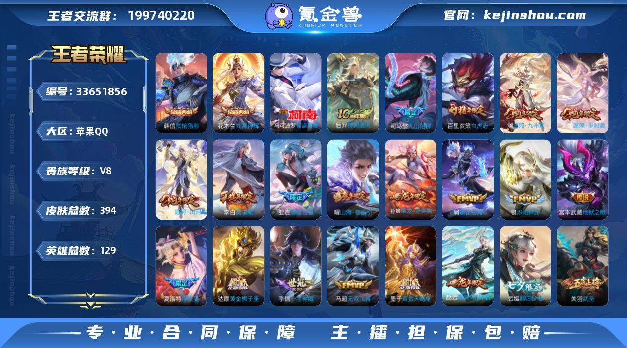 苹果Q-V8-至尊星耀V段位-129英雄-394皮肤-2典藏皮肤-1珍品传说-45传说-101史诗 【英雄全皮】:孙权全皮,敖隐全皮,夏洛特全皮,司空震全皮,莱西奥全皮,海诺全皮 【荣耀典藏】:花木兰九霄神辉,韩信弑枪猎影 【珍品传说】:马可波罗怪盗基德 【传说皮肤】:后羿神树通天,司马懿九山相柳,司空震愿照山河定,澜愿照九州拓,虞姬愿照岁时盈,桑启鸣野蒿,墨子黄金天蝎座,海月金乌负日,亚连落雪白狼,貂蝉曦玄引,孙策乘龙淬吴钩,赵云乘龙铭钟鼎,澜逐花归海,吕布遇见神鼓,云缨鹤归松栖,诸葛亮鹤羽星尊,公孙离记忆之芯,夏洛特浮生妄,伽罗炽翼辉光,曜山海苍雷引,吕布怒海麟威,李白诗剑行,百里守约碎云,孙尚香音你闪耀,马超无双飞将,露娜启示之音,赵云淬星耀世,西施游龙清影,铠绛天战甲,镜炽阳神光,虞姬启明星使,关羽武圣,李信一念神魔,刘备时之恋人,干将莫邪久胜战神,达摩黄金狮子座,百里玄策白虎志,花木兰冠军飞将,梦奇胖达荣荣,后羿黄金射手座,貂蝉仲夏夜之梦,李白凤求凰,宫本武藏地狱之眼,孙悟空地狱火,狄仁杰超时空战士 【限定皮肤】:暃埋骨钱,蔡文姬夏日便利店,大乔绒语心约,虞姬夏日便利店,姜子牙天穹之誓,李白谪仙醉月,狄仁...