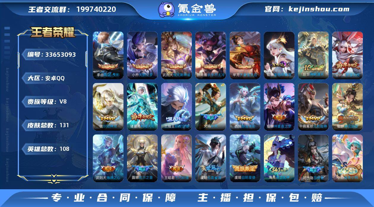 【WZYH1196】贵族等级8/荣耀典藏数量5/传说皮肤数量15/史诗皮肤数量51/皮肤数量131/英雄数量108/段位永恒钻石/武则天/倪克斯神谕/天鹅之梦/杀手不太冷/大秦宣太后/鸣剑·曳影/金色仲夏夜/神树通天/启示之音/补天/遇见胡旋/乞巧织情/游龙清影/默契交锋-兰陵王/祈雪灵祝/时雨天司/炽阳神光/启明星使/久胜战神/云霓雀翎/仲夏夜之梦/海洋之心/阴阳师/皇家上将/蔷薇恋人/高山流水/寅虎·展翼/夜都怪侠/白晶晶/幻夜卜梦/云间偶戏/女儿国国王/魔术师/万华元夜(s22)/沙漠行僧(s26)/海滩派对/一生所爱/傲雪梅枪/金庭之子(s27)/默契交锋-花木兰/潮玩骑士王/圣弓游侠/霸王别姬-虞姬/驱傩正仪(s24)/遇见飞天/寅虎·心曲/朔望之晖/真爱魔法/白鹤梁神女/火炮绅士/千军破阵(s25)/玉兔公主/吟游魔法/拒霜思/海盐诗旅(s30)/线条小狗-周瑜/线条小狗-小乔/海月海之女神/明世隐百晓客/灵蛊蚀心/唤灵魅影/永昼/诗语江南/遇见神鹿/无限星赏官/鹰眼统帅/节奏热浪/逐浪之夏/天才门将/舞动绿茵/心灵骇客/缤纷独角兽/乘风破浪/德古拉伯爵/千年之狐/圣诞狂欢/龙骑士/女仆咖啡/魅力维加斯/水果甜心/鬼剑武藏/偶像歌手/冰雪圆舞曲/圣诞恋歌/未来纪元-赵云/暗夜猫娘/苍穹之光/电玩小子/影百相守梦/妄想特派/零食...