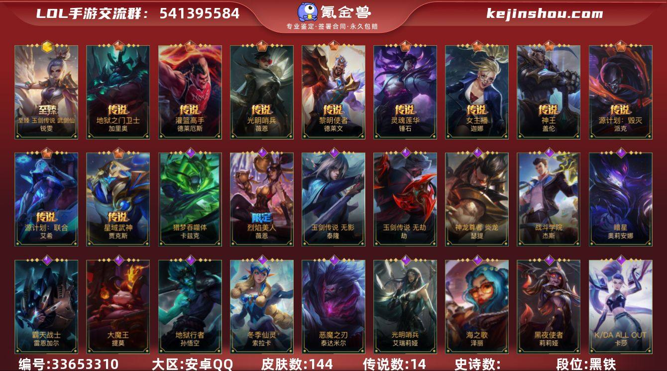 【LOLSYH485】107英雄/144皮肤/6神话/14传说/荣耀黄金/夜星流火 金克丝/流光仙韵 莫甘娜/此志凌云 嘉文四世/乘龙破渊 李青/至臻锐雯/烈焰美人薇恩/神王盖伦/告白气球 拉克丝/光明哨兵薇恩/星域武神贾克斯/翩翩绣蕊 霞/蕊雪盈春:兴荣 永恩/灌篮高手/女主播风女/黎明使者德莱文/源计划:联合/地狱之门卫士/双城之战:殊途 杰斯/源计划:毁灭/灵魂莲华锤石/星之守护者拉克丝/桃映暖春 拉克丝/霸天战士狮子狗/雷喵喵尔/星域先知(可升级)/丧尸努努/太空律动努努/地狱行者猴子/暗星发条/星之守护者发条/恶魔之刃/猎梦吞噬体 卡兹克/清剿小队金克丝/蕊雪盈春:晏安 赫卡里姆/礼物选好了吗? 布隆/圣龙/腥红之月卡牌/K/DA ALL OUT卡莎/玉剑传说 苍鸾/清剿小队潘森/铁血女忍/泳池派对剑姬/玉剑传说 无双/北极星使者 安妮/源计划:风/战场之王亚索/幻梦甜心阿狸/源计划:阴/灵能特工劫/玉剑传说 无劫/秘旅探索者贾克斯/灵能特工天使/源计划:山/我,羽饰骑士 崔丝塔娜/娜就去看看/大魔王/灵机慧谋 提莫/睡衣守护者 璐璐/永恒之森 霞/太空律动“百万调音”/告白气球 格温/梦境绅探 凯南/星之守护者女枪/海之歌泽丽/神龙尊者 炎龙 瑟提/灵魂莲华永恩/玉剑传说 无极/西部魔影诺手/魅惑女...