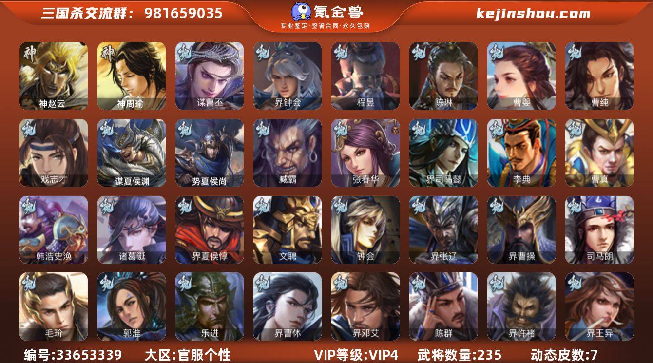 神赵云,界钟会,陈琳,曹婴,曹纯,戏志才,谋曹丕,程昱,谋马超,势魏延,界朱然,界徐盛,郑玄,界李儒,公孙康,笮融,兀突骨,士燮,神周瑜,势夏侯尚,SP关羽,SP蔡文姬,乐进,曹昂,诸葛诞,朱灵,文聘,SP姜维,张春华,钟会,曹冲,郭淮,满宠,界王异,界曹操,界司马懿,界夏侯惇,界张辽,界许褚,界郭嘉,李典,曹真,韩浩史涣,陈群,曹叡,钟繇,司马朗,界甄姬,杜畿,界邓艾,界曹植,界满宠,毛玠,界曹休,谋夏侯渊,臧霸,SP孙尚香,夏侯霸,马良,关兴张苞,廖化,界马岱,关平,简雍,刘封,界法正,界刘备,界马超,SP徐庶,吴懿,周仓,张松,刘谌,马忠,黄皓,界孟获,界祝融,陈到,界姜维,杨仪,邓芝,傅肜,界简雍,费祎,彭羕,界张嶷,谋张飞,吴班,霍峻,诸葛果,蒋琬费祎,甘夫人,鲁肃,凌操,大乔小乔,诸葛恪,诸葛瑾,孙鲁育,程普,韩当,潘璋马忠,虞翻,朱然,界甘宁,界吕蒙,界黄盖,界周瑜,界大乔,界陆逊,孙鲁班,朱桓,顾雍,全琮,孙登,孙亮,吕岱,周鲂,周妃,许贡,界韩当,孙邵,张温,吕范,界孙休,张布,伏完,刘协,界袁术,SP赵云,张宝,伏皇后,李儒,界于吉,...