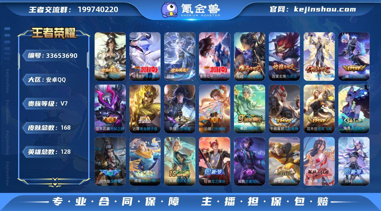 【超高性价比精品男号·325幸运值·江户川柯南·怪盗基德·器灵落星盏·沧流箭·愿照山河定·白虎志·伽罗琥珀纪元·无二次包过】YXw23973-安卓Q-128英雄-168皮肤-6王者印记-100铭文-贵族积分3w【贵族7】【4珍品·1星传说·11传说·13按键·325幸运值】【因赛季更新游戏段付以上号为准!】 【英雄全皮】:孙权全皮,敖隐全皮 【珍品传说】:伽罗沧流箭,嫦娥器灵落星盏,鲁班七号江户川柯南,马可波罗怪盗基德 【传说皮肤】:马超神骥逐星野,司空震愿照山河定,云缨幻光神枪,桑启鸣野蒿,澜逐花归海,李信一念神魔,干将莫邪久胜战神,达摩黄金狮子座,百里玄策白虎志,花木兰冠军飞将,宫本武藏地狱之眼 【限定皮肤】:蒙犽顽岩魄,蔡文姬夏日便利店,虞姬夏日便利店,姜子牙天穹之誓,李白谪仙醉月,狄仁杰阴阳师,赵云皇家上将,元歌无心,狄仁杰魔术师,项羽海滩派对,孙悟空孙行者,百里玄策白虎志,嫦娥拒霜思,张良古海寻踪,鬼谷子天穹祈灯,伽罗琥珀纪元,沈梦溪龙舞盛年,刘邦剑破天穹,刘备异域游侠,芈月浮光幕影,周瑜熔金海岸 【年限皮肤】:百里玄策白虎志,司空震愿照山河定 【赛季限定】:张良古海寻踪,鬼谷子天穹祈灯,刘邦剑破天穹,姜子牙天穹之誓,东皇太一噬灭天穹...